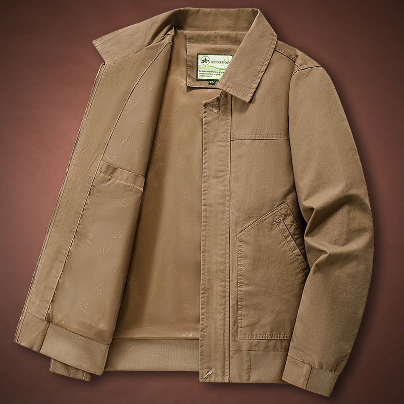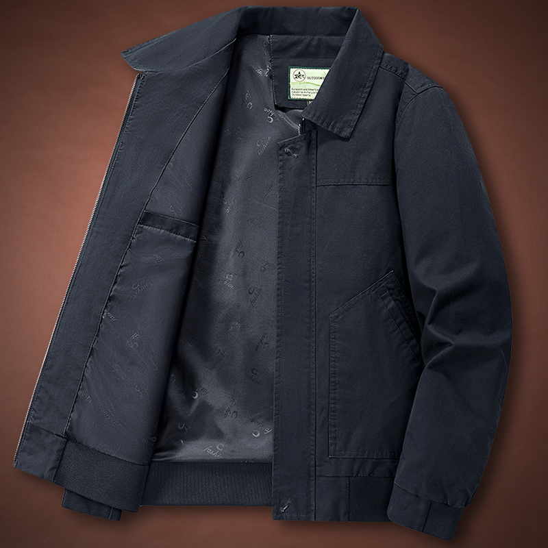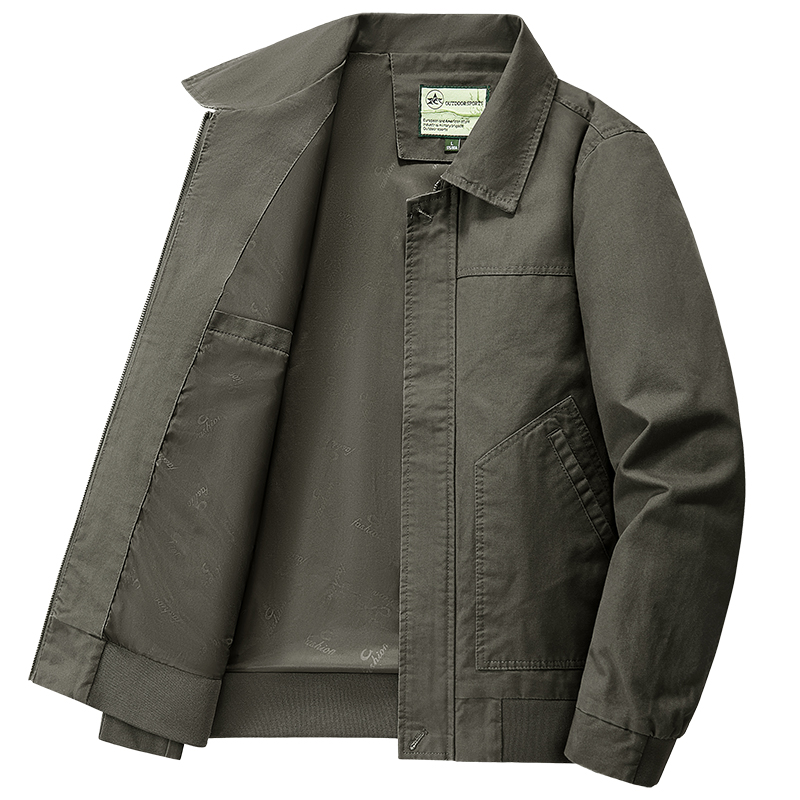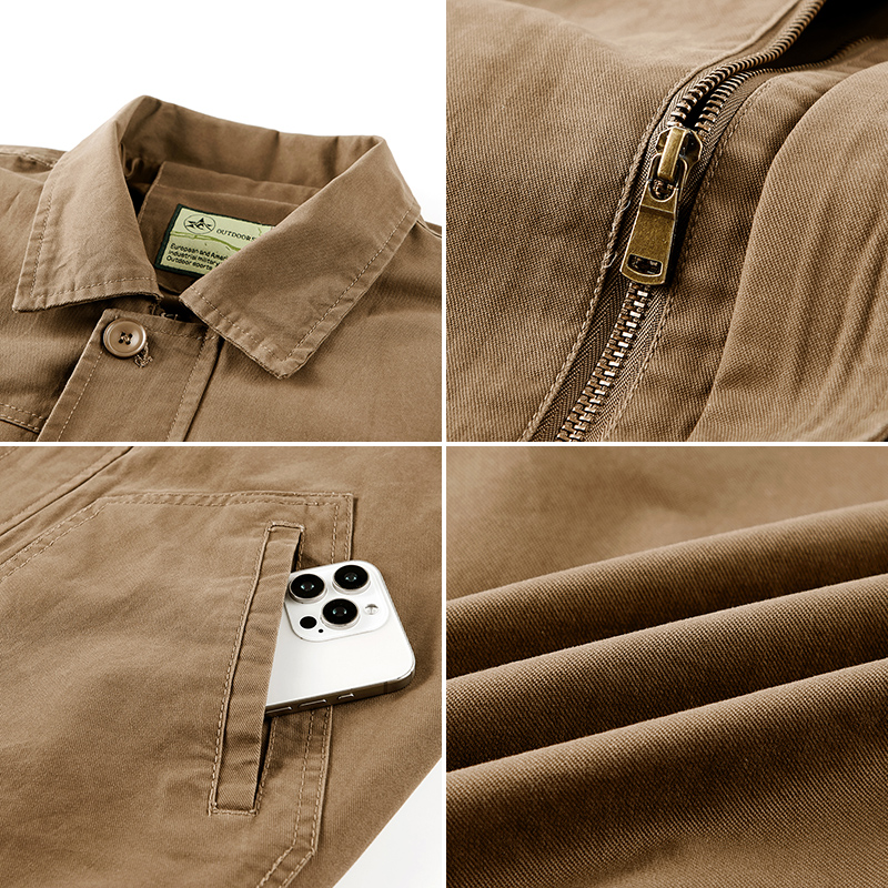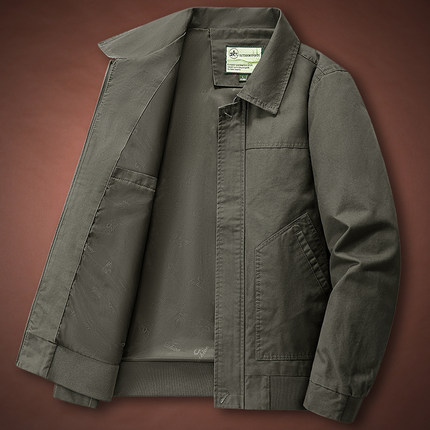 春秋季男装美式复古水洗纯棉夹克翻领中年工装大码宽松外套爸爸装