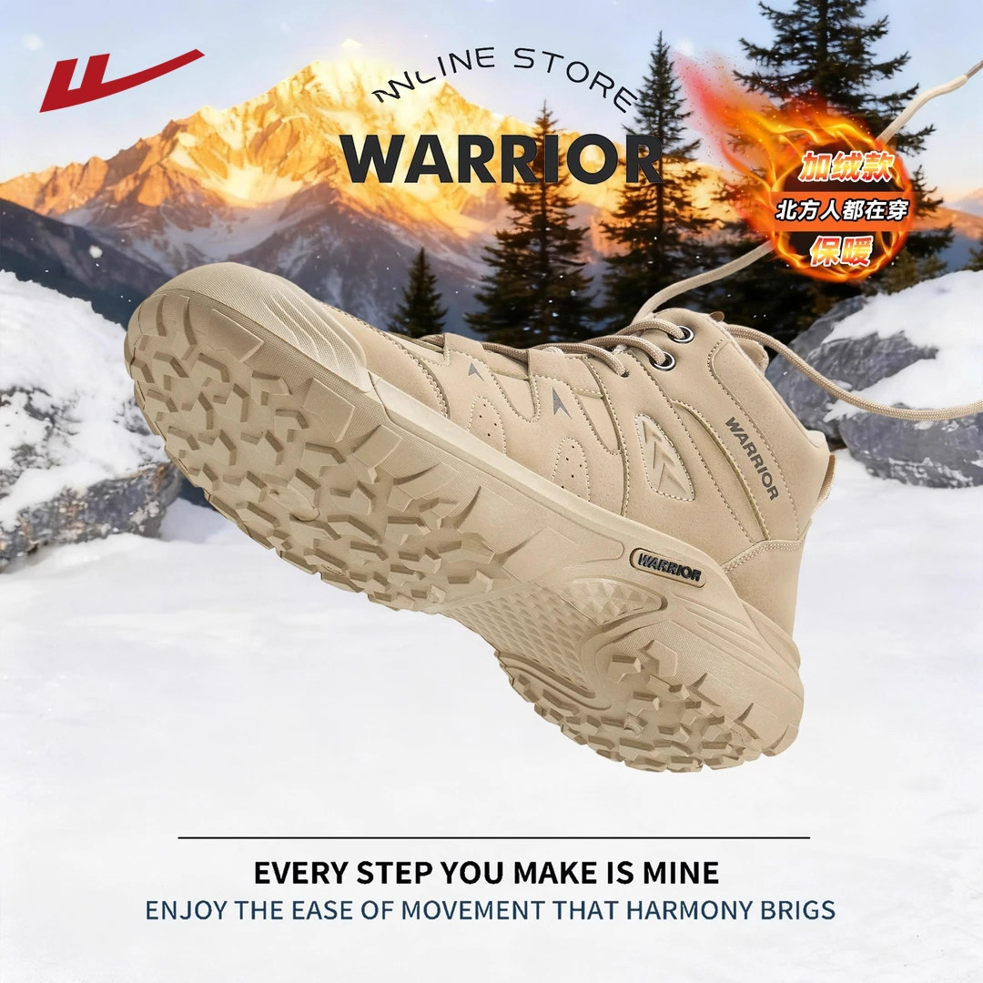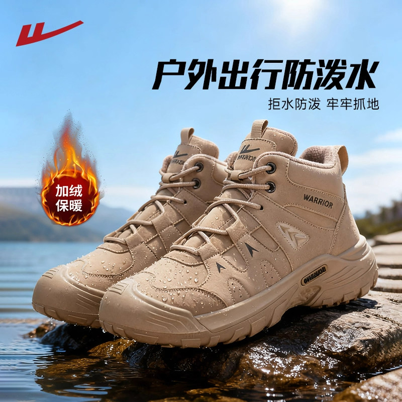 回力登山鞋男鞋加绒棉鞋2025秋冬季高帮户外工装雪地靴男士马丁靴