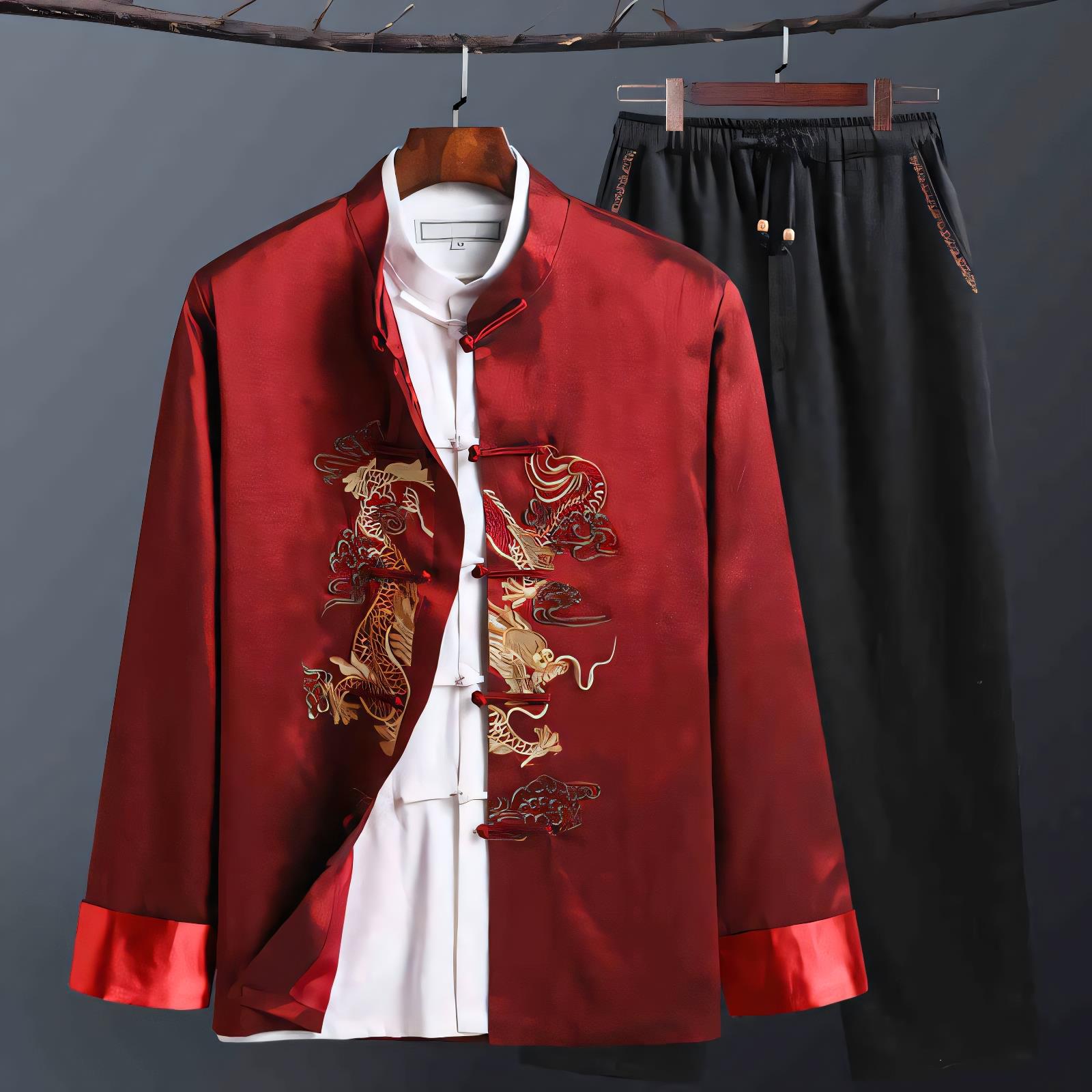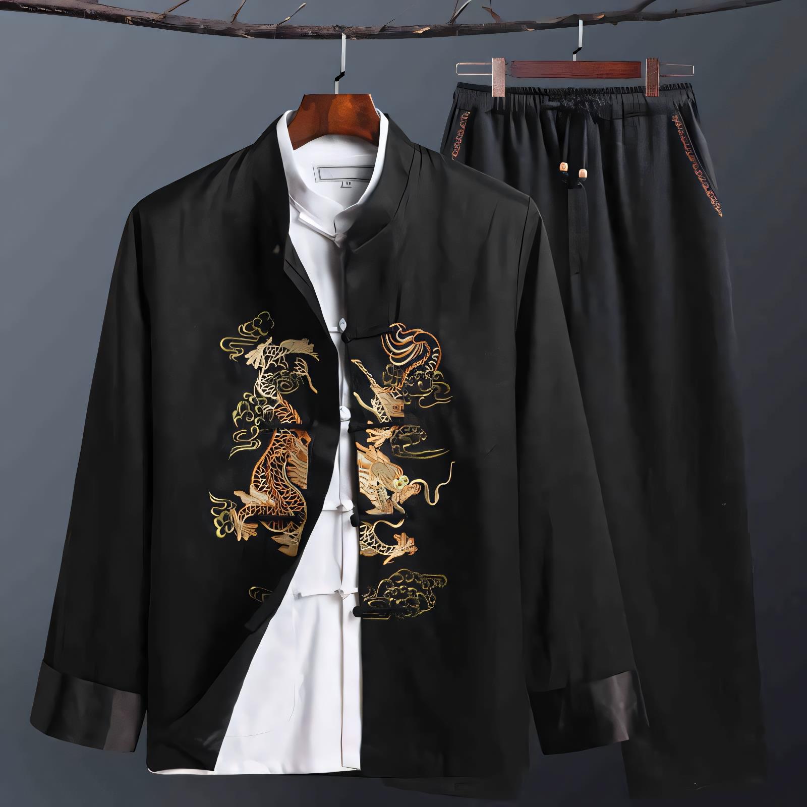 高档中国风唐装男长袖套装秋季中老年爸爸过寿生日衣服爷爷装外套