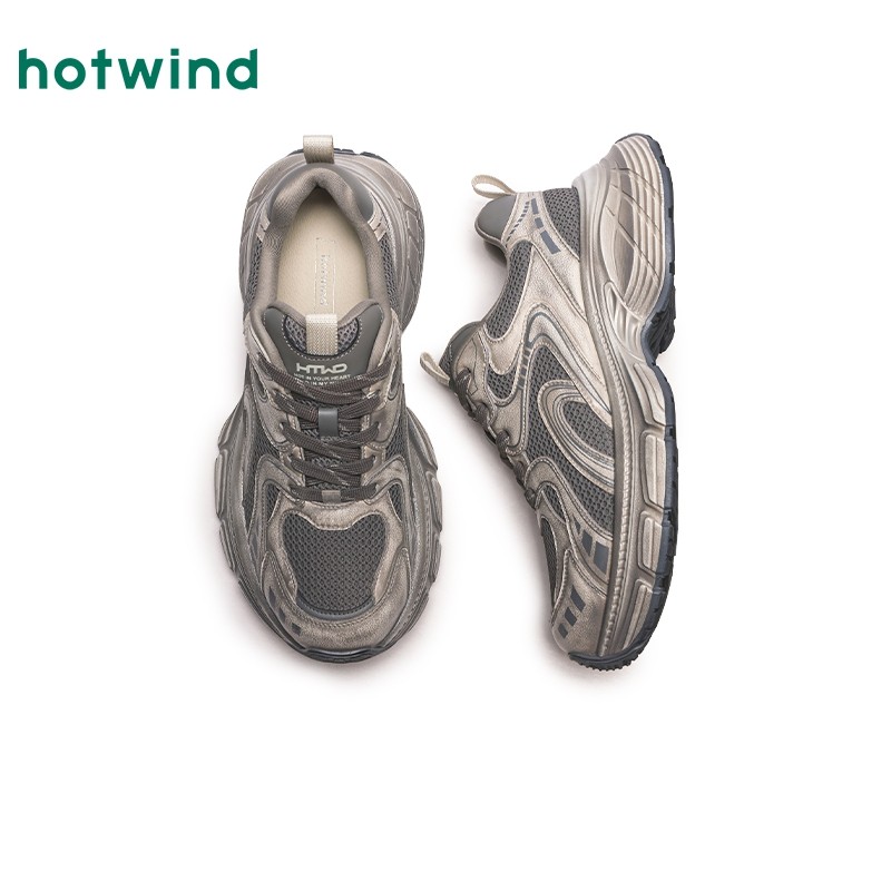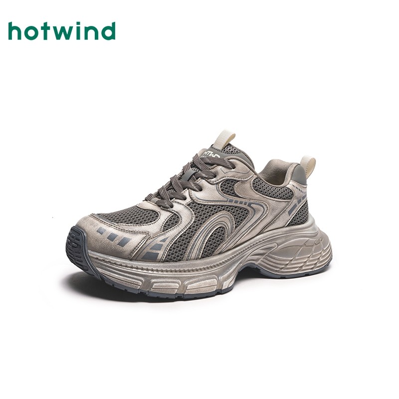 热风男鞋冬季新款男士时尚圆头运动休闲鞋子系带舒适老爹鞋