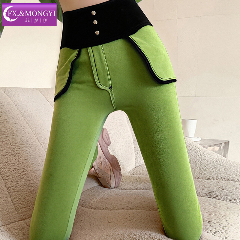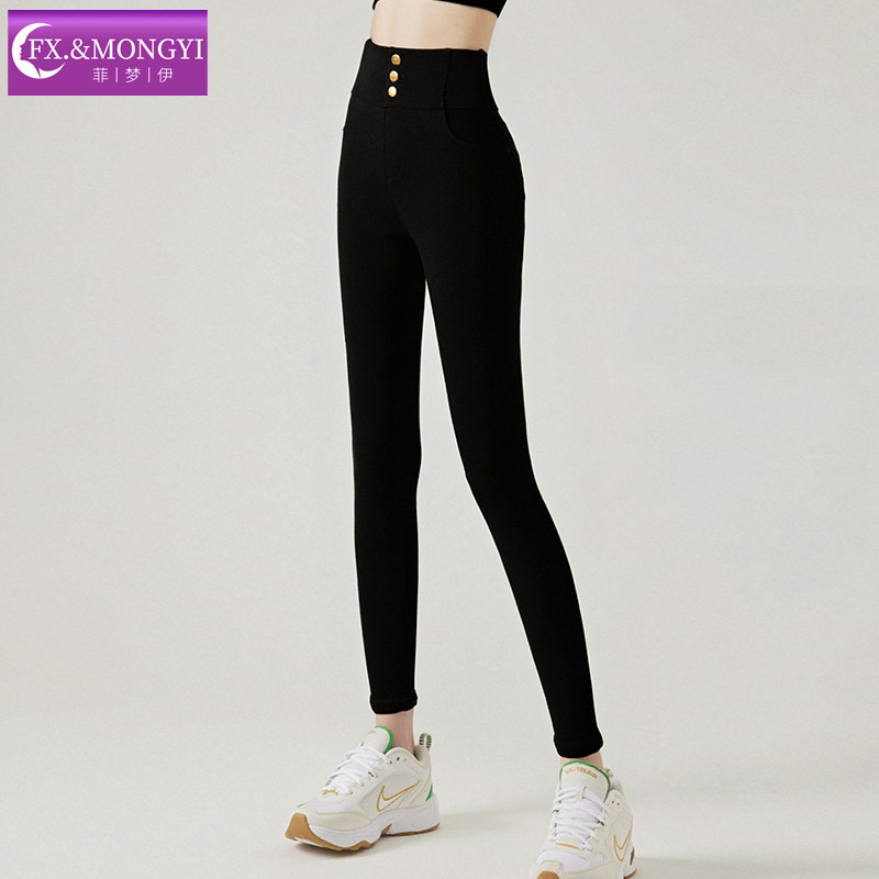 菲梦伊加绒加厚黑色打底裤女外穿冬季高腰提臀显瘦修身小脚裤长裤