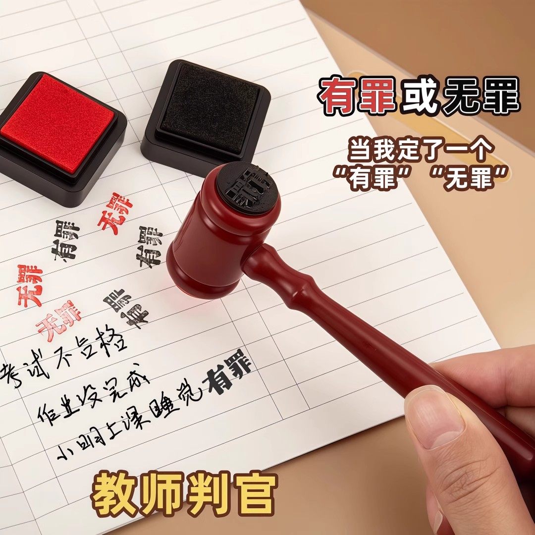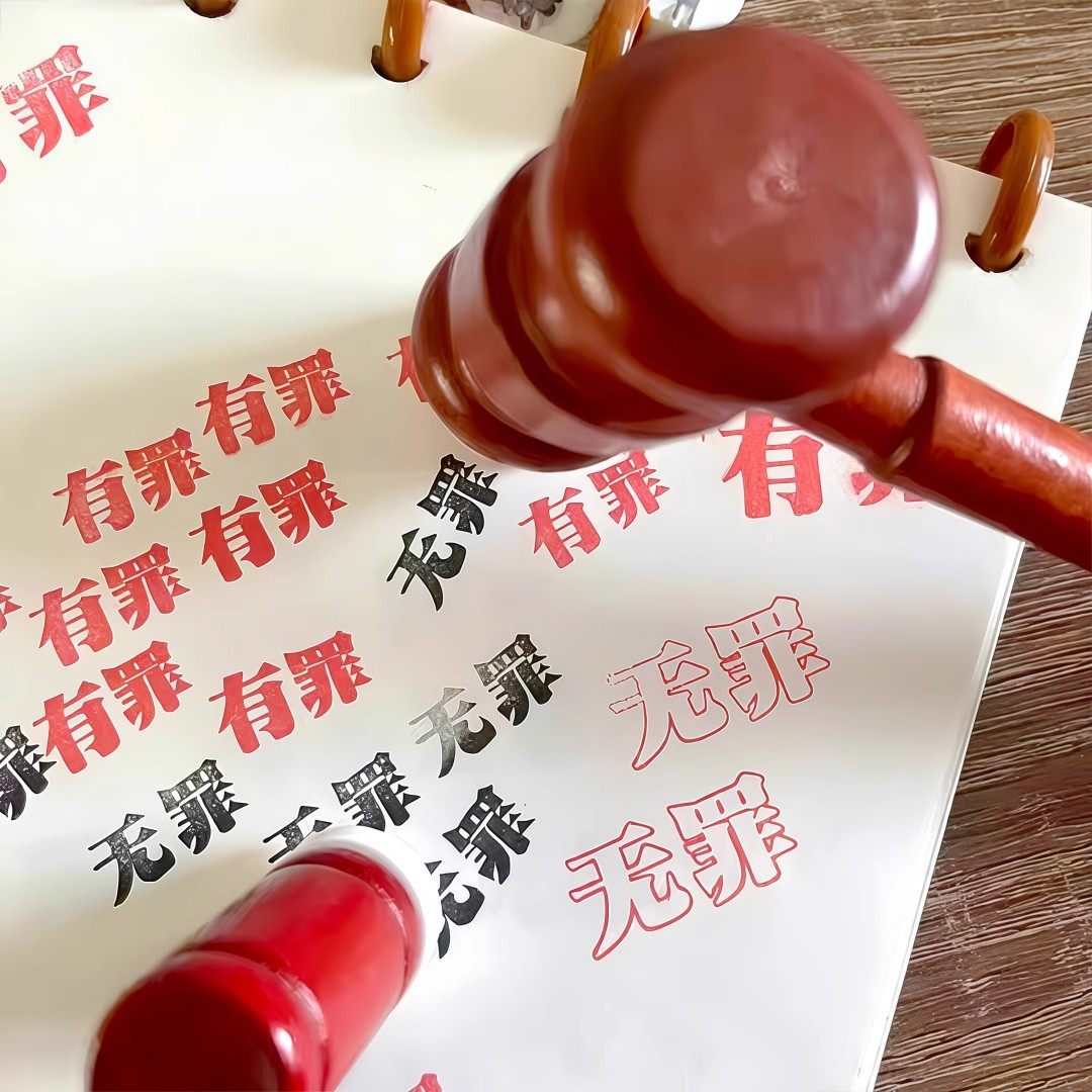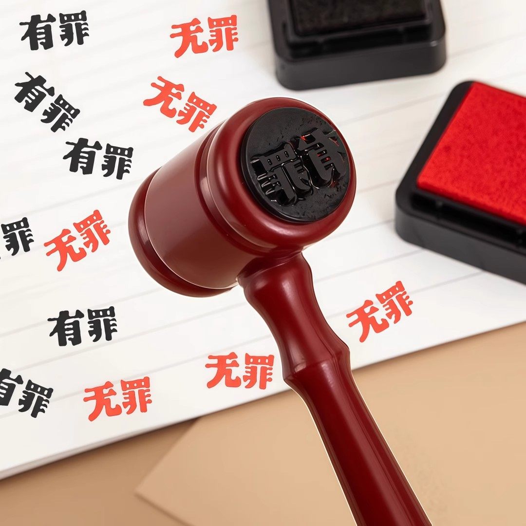 创意有罪无罪法官印章法官锤自制搞怪学生手账创意逆转裁判锤子朋友闺蜜玩具印泥木质黑红印泥无罪法官锤子