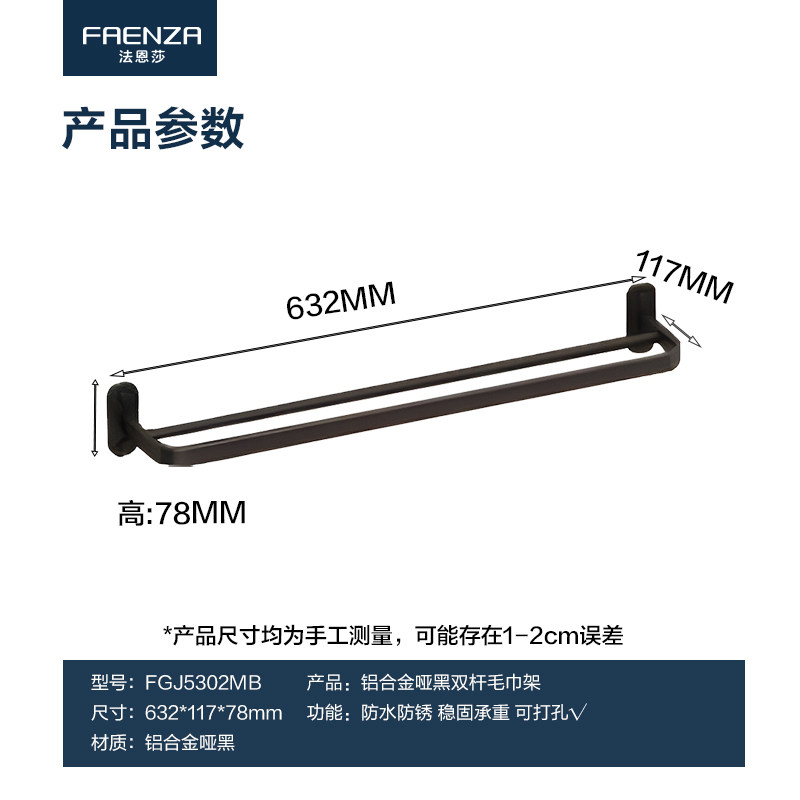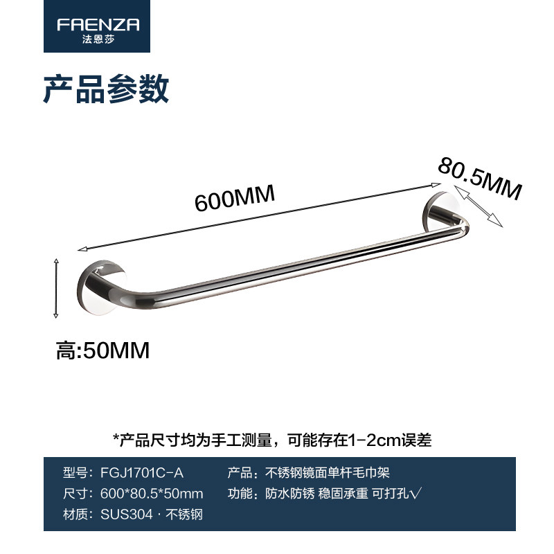 法恩莎卫浴卫生间置物架毛巾杆不锈钢挂式洗手间厕所浴室浴巾架
