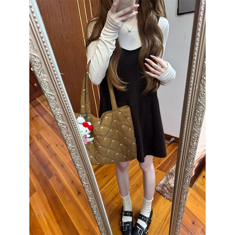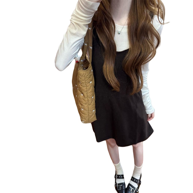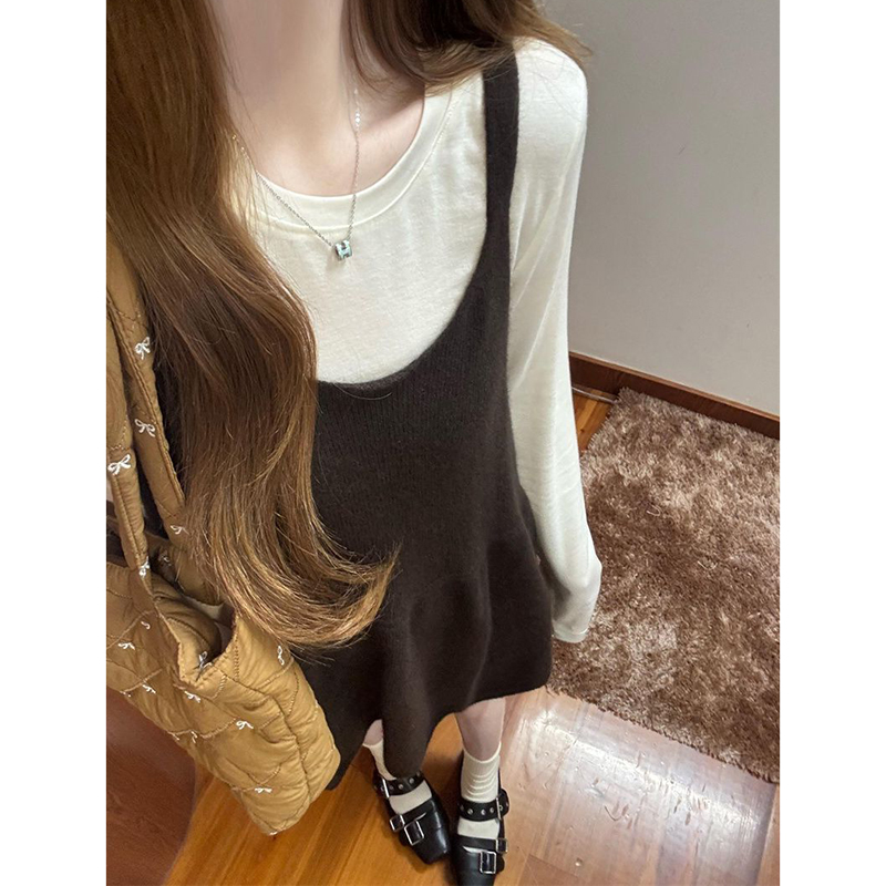 入秋新款小个子甜美减龄简约风针织吊带背心裙女叠穿长袖打底上衣