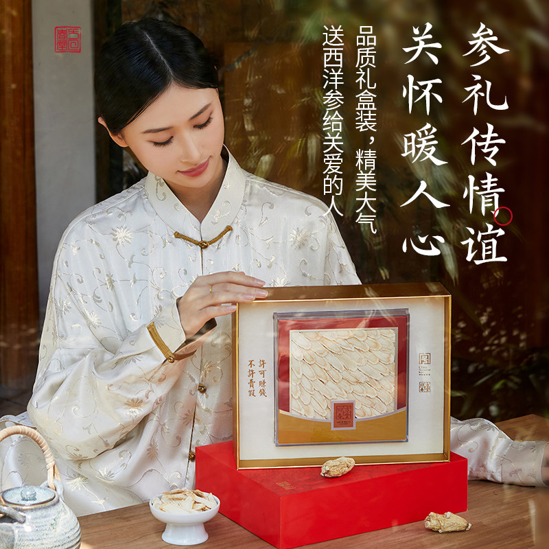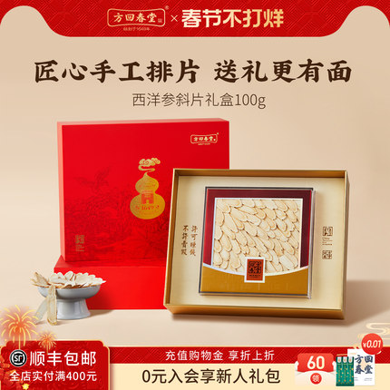 方回春堂西洋参片礼盒春节过年货节高端礼盒送礼长辈老年人斜切片