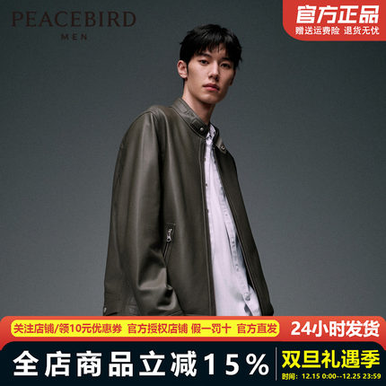 【真皮皮衣】太平鸟男装压印皮衣潮流立领拉链夹克外套B1BDD4F04