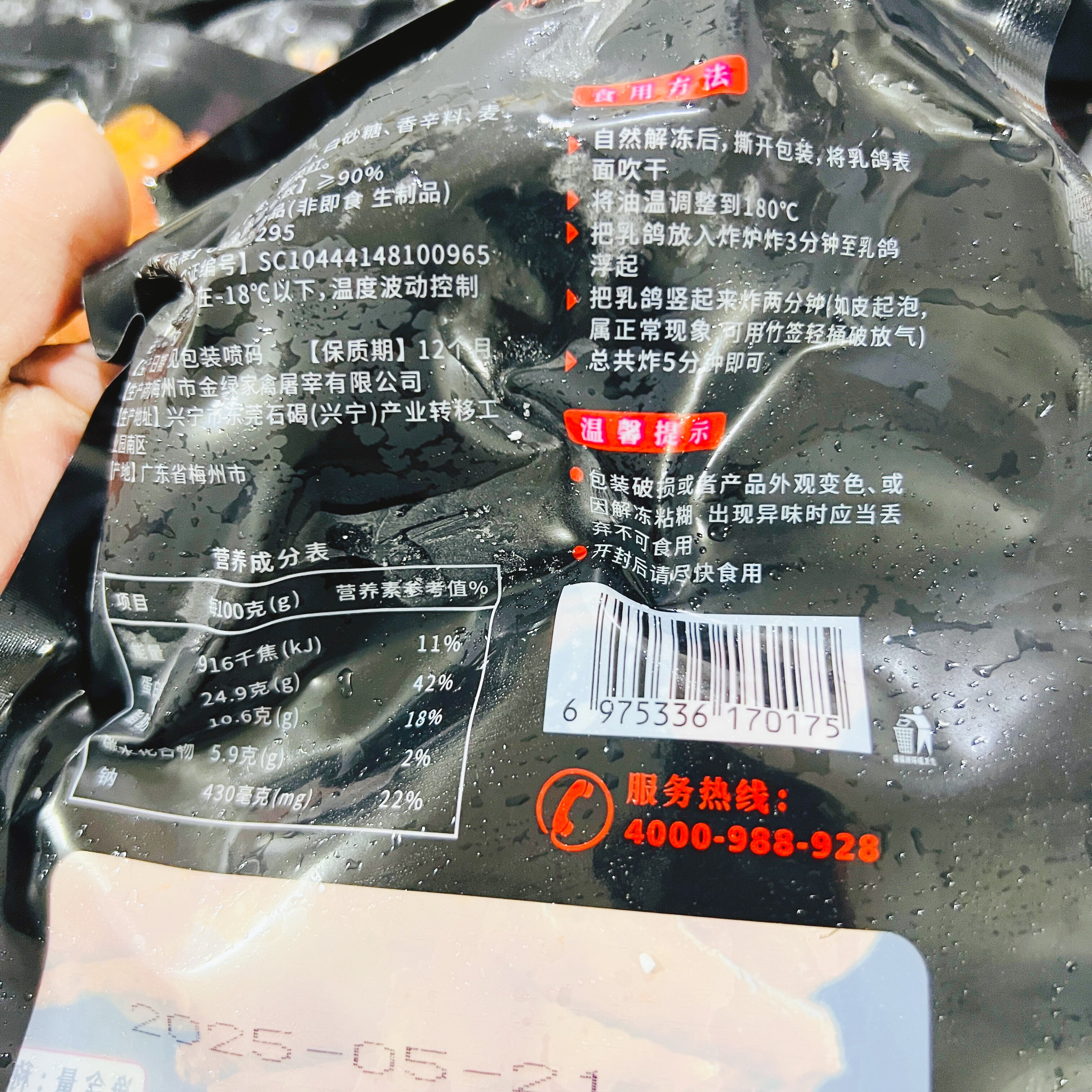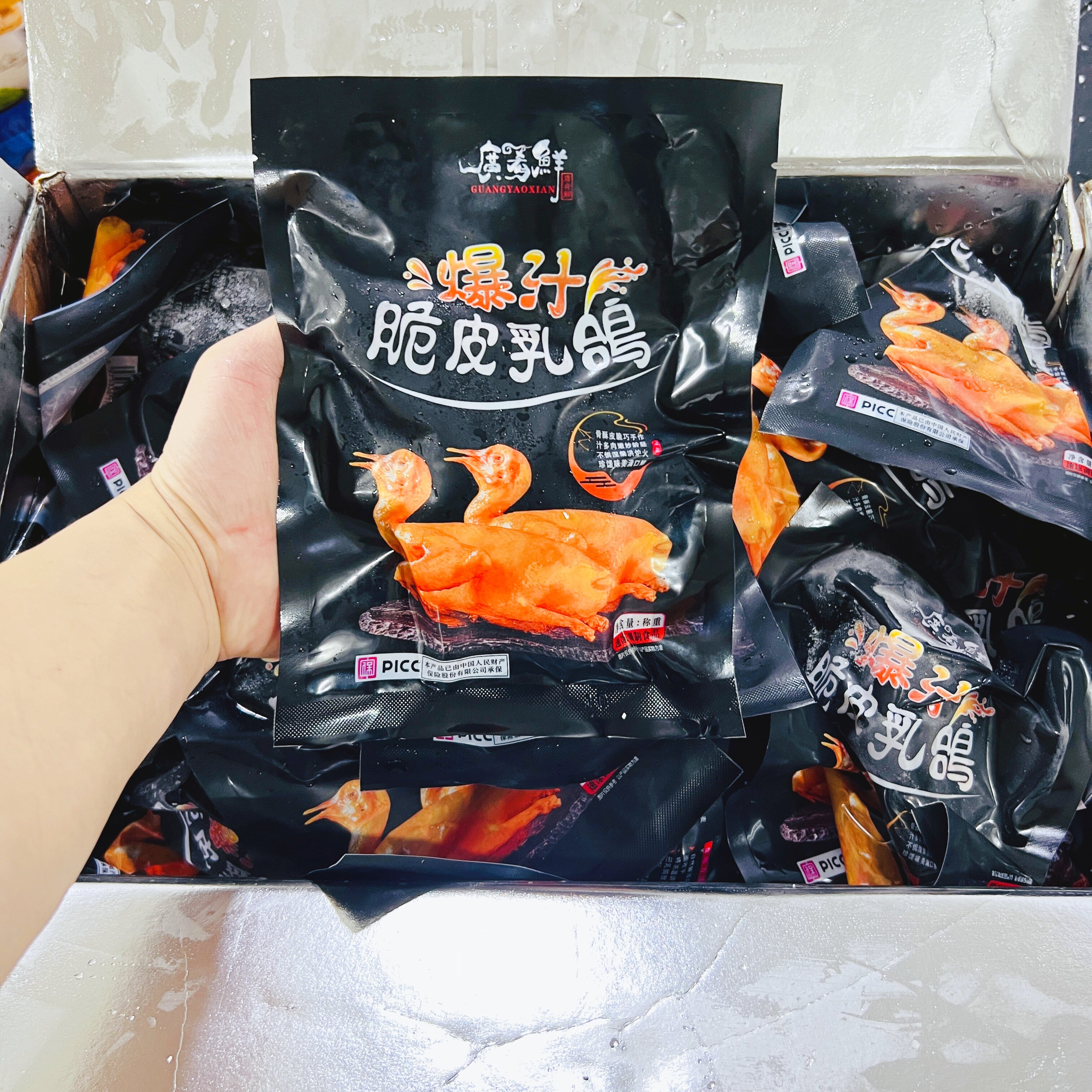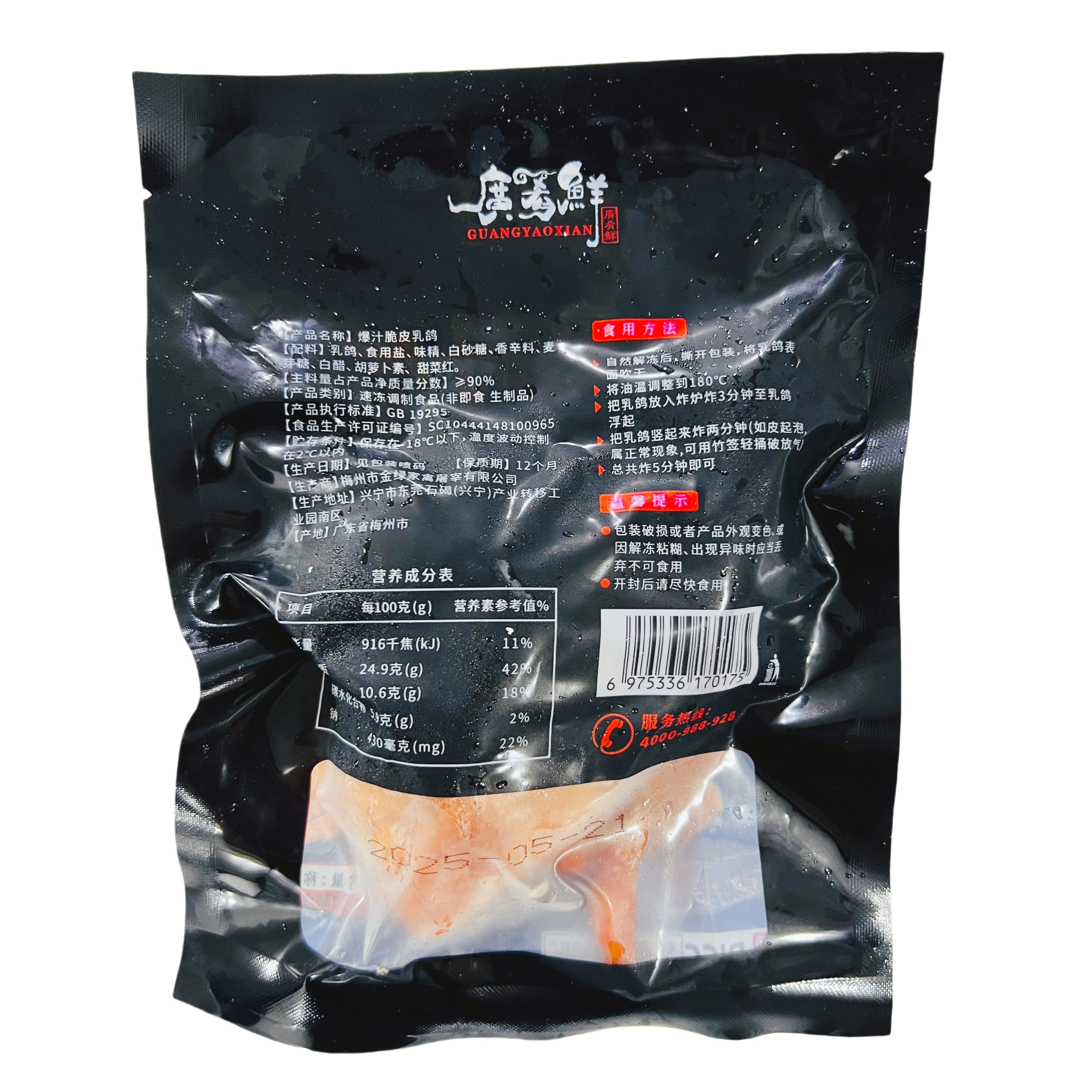 广肴鲜爆汁脆皮乳鸽约250g*5只冷冻生鲜乳鸽半成品腌制油炸烤乳鸽