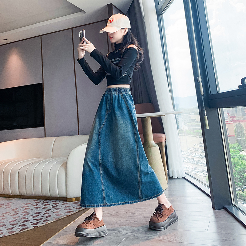胖MM遮胯神裙高腰牛仔半身裙200斤230显瘦A字战袍微胖炸街款显高