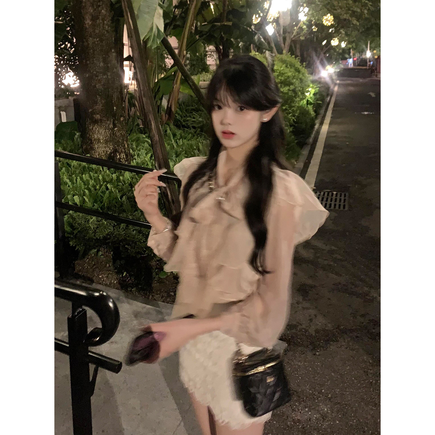 微胖纯欲温柔荷叶边领结长袖衬衫