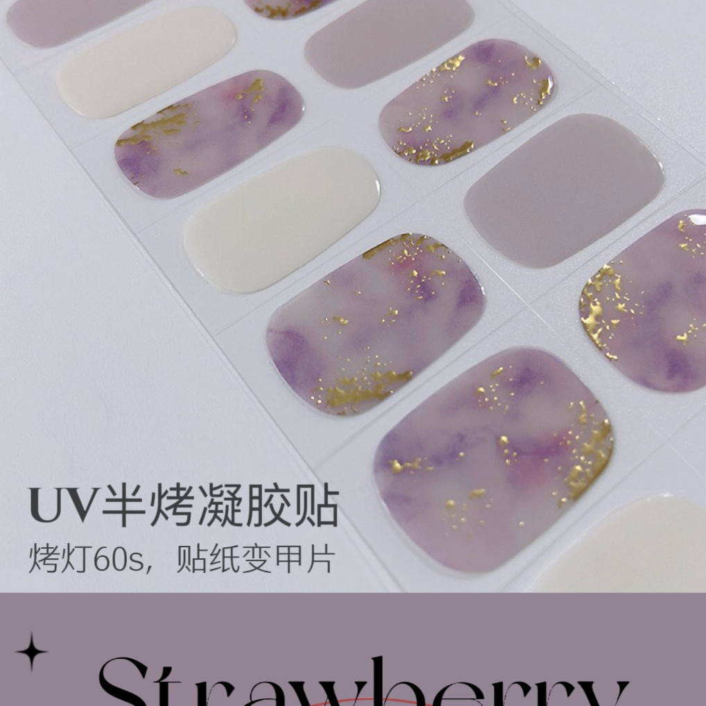 紫色UV指甲贴甲油膜光疗UV半烤凝胶贴需烤灯美甲贴不伤甲防水持久
