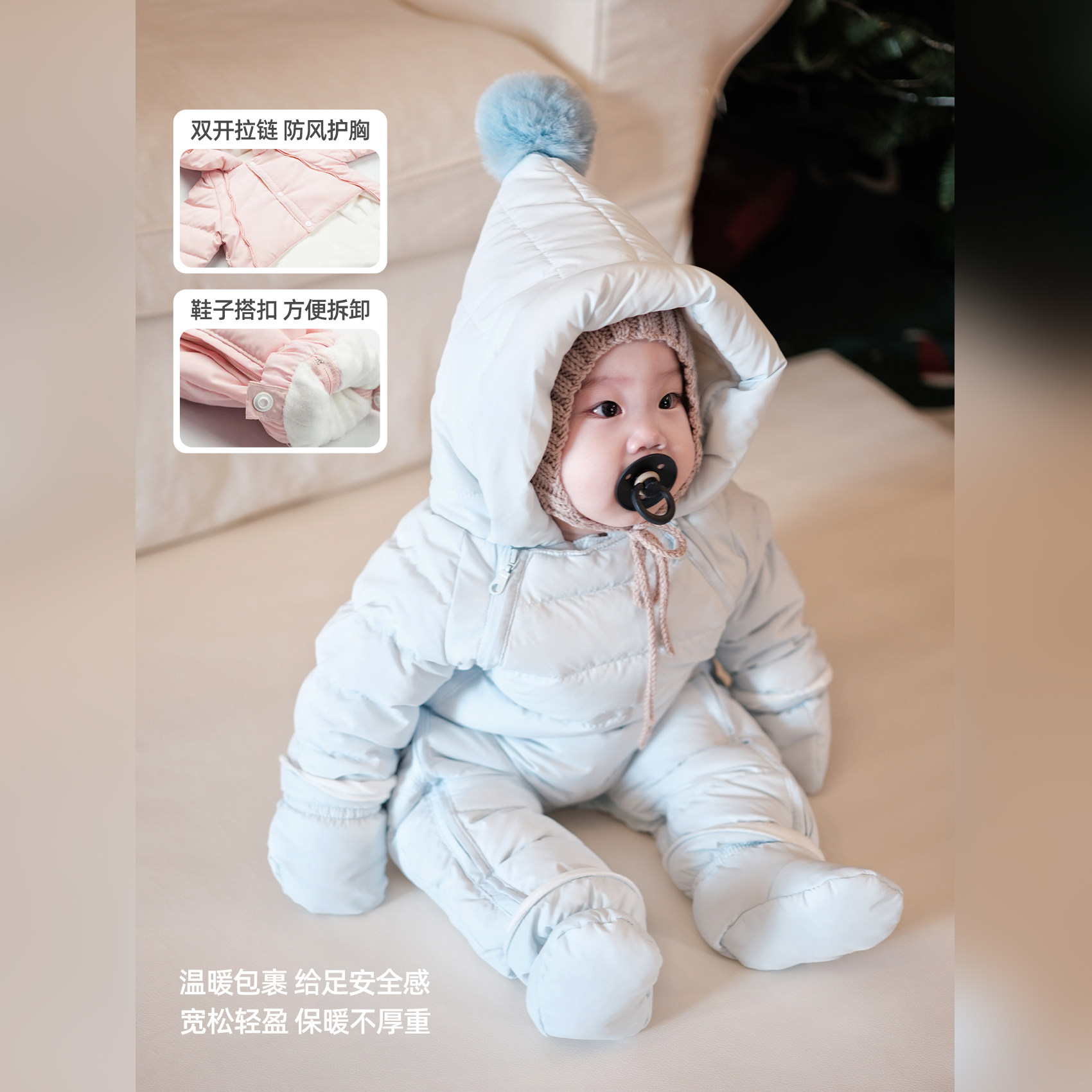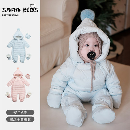婴儿羽绒服连体衣冬季加厚保暖