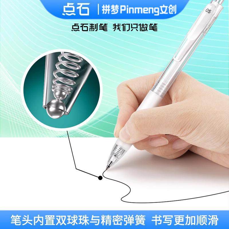 点石按静中性笔批改红笔高颜值学生双珠黑色子弹头按动静音刷题笔