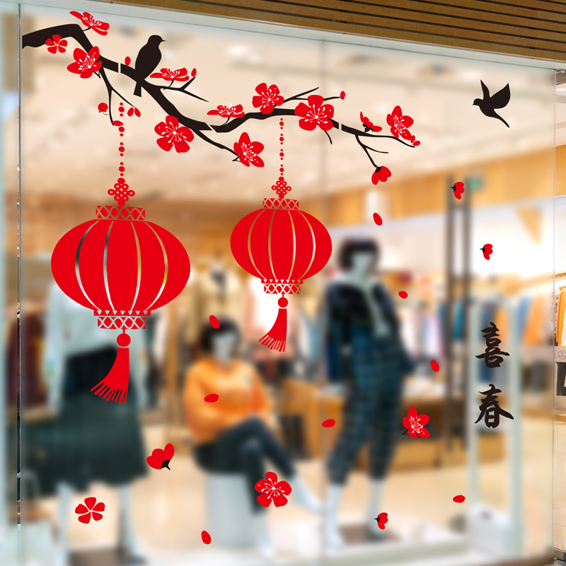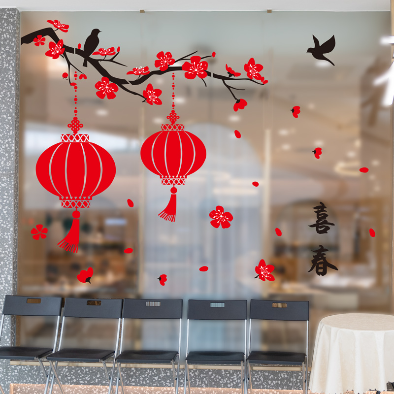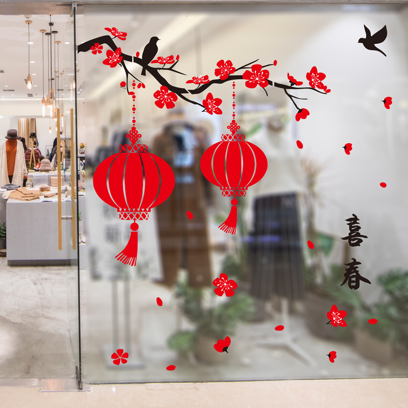 新春春节喜庆墙贴画橱窗玻璃贴纸过年布置新年装饰品梅花灯笼贴纸