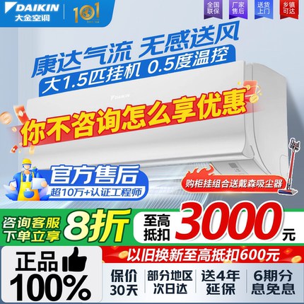 大金空调官网旗舰店大1.5匹1P家用冷暖卧室变频省电壁挂式包安装
