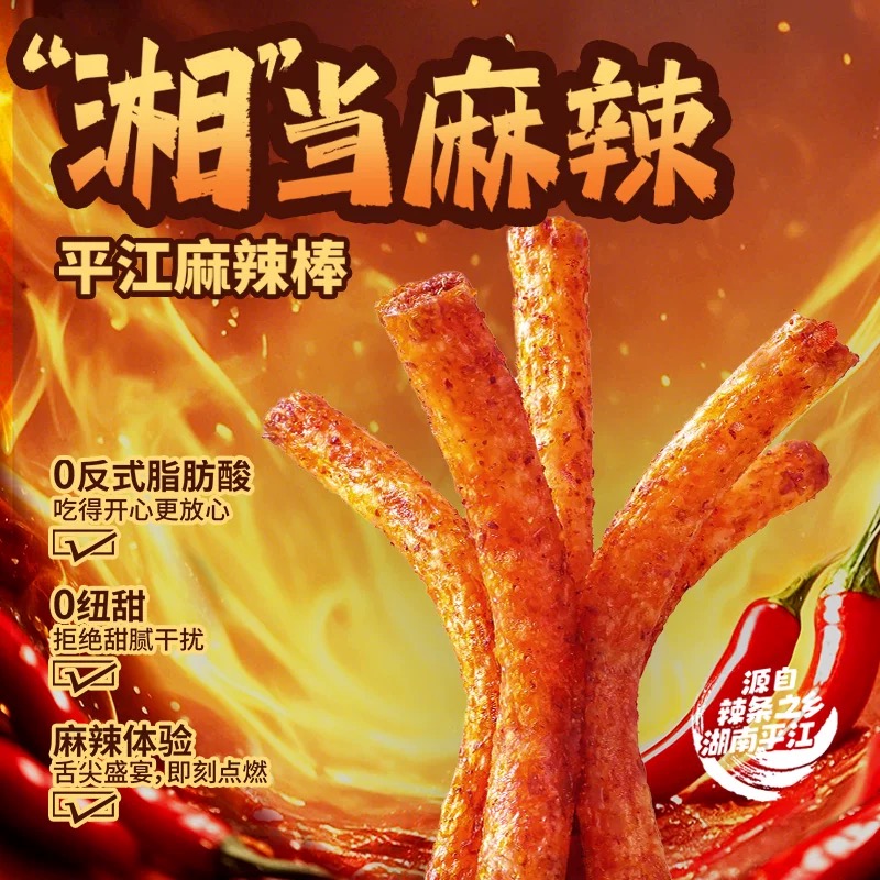 黑色经典平江麻辣棒湖南特产辣条零食小吃香辣休闲辣味解馋办公室