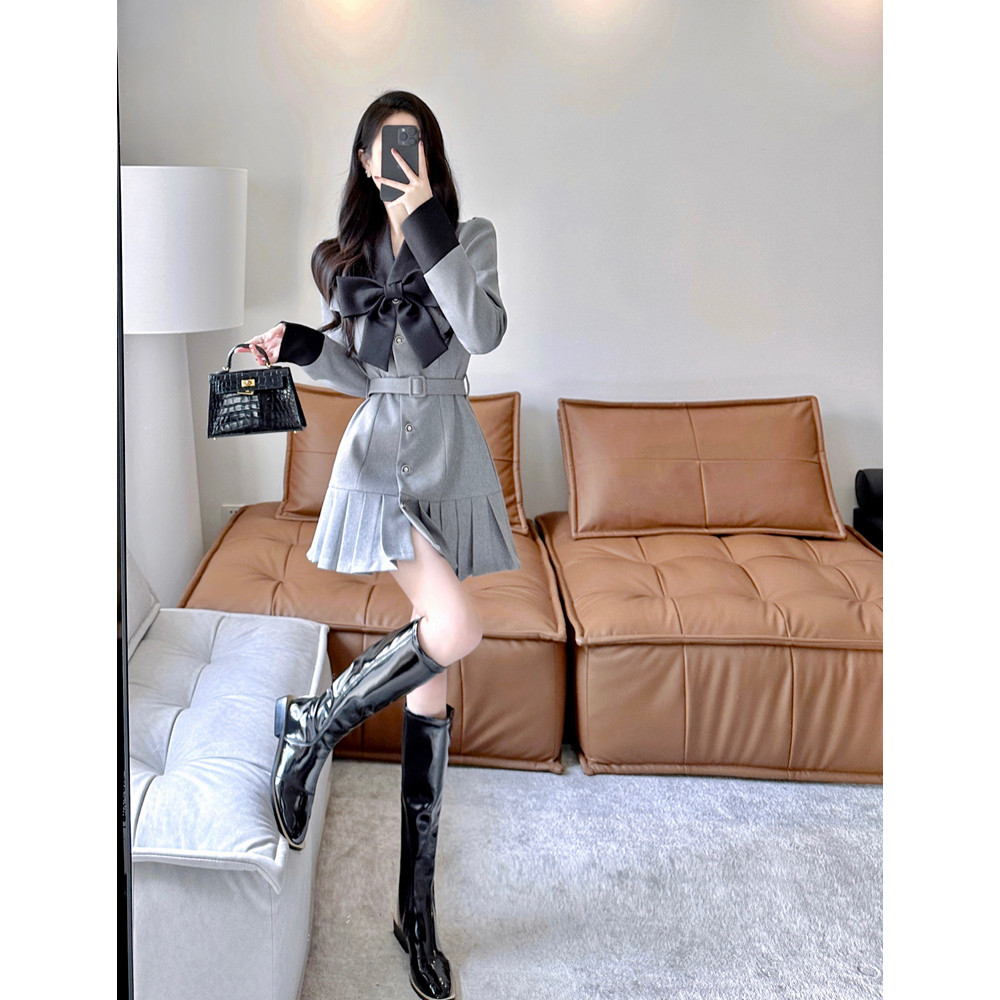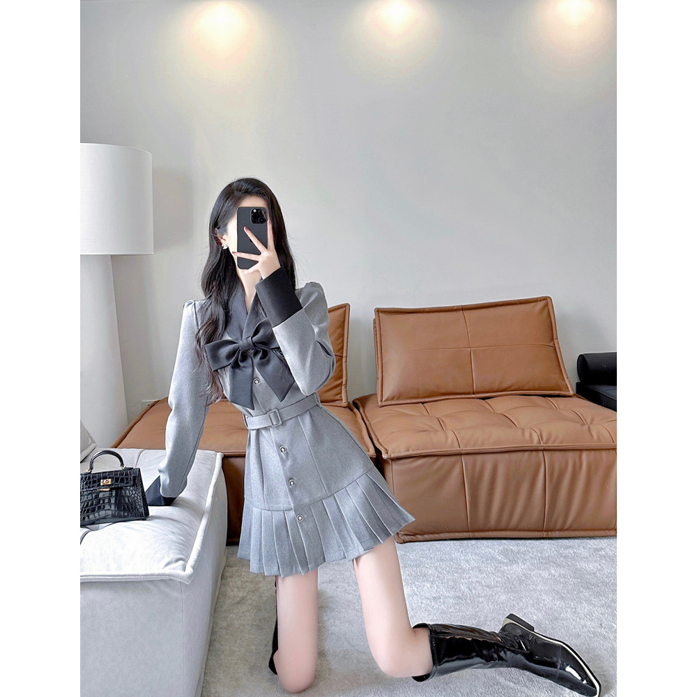 西装连衣裙2025新款女秋冬高级感气质名媛法式收腰显瘦a字百褶裙