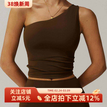 云感斜肩收腰瑜伽背心速干跑步防震运动单肩内衣健身美背文胸女