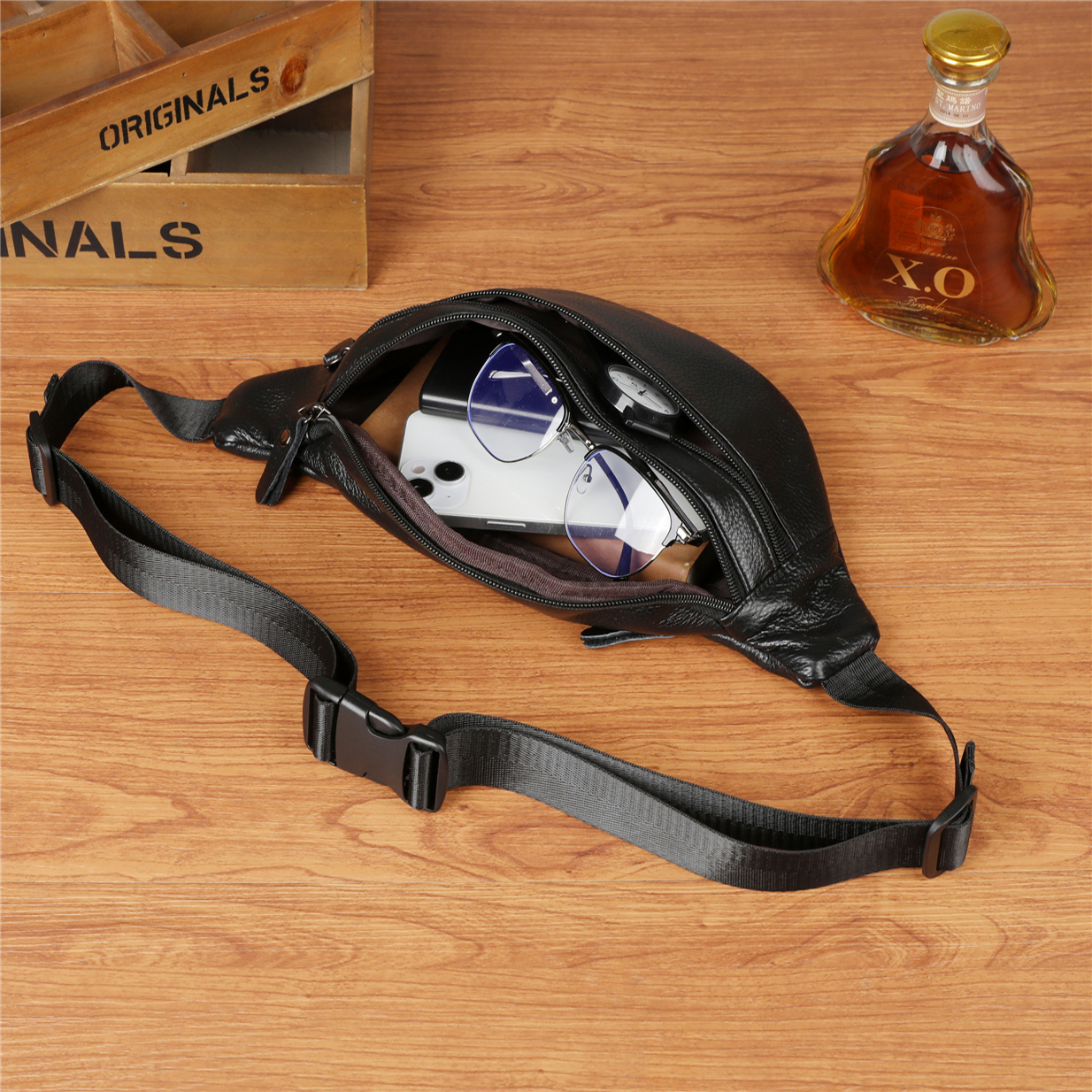 头层牛皮大容量腰挎斜挎手机包男