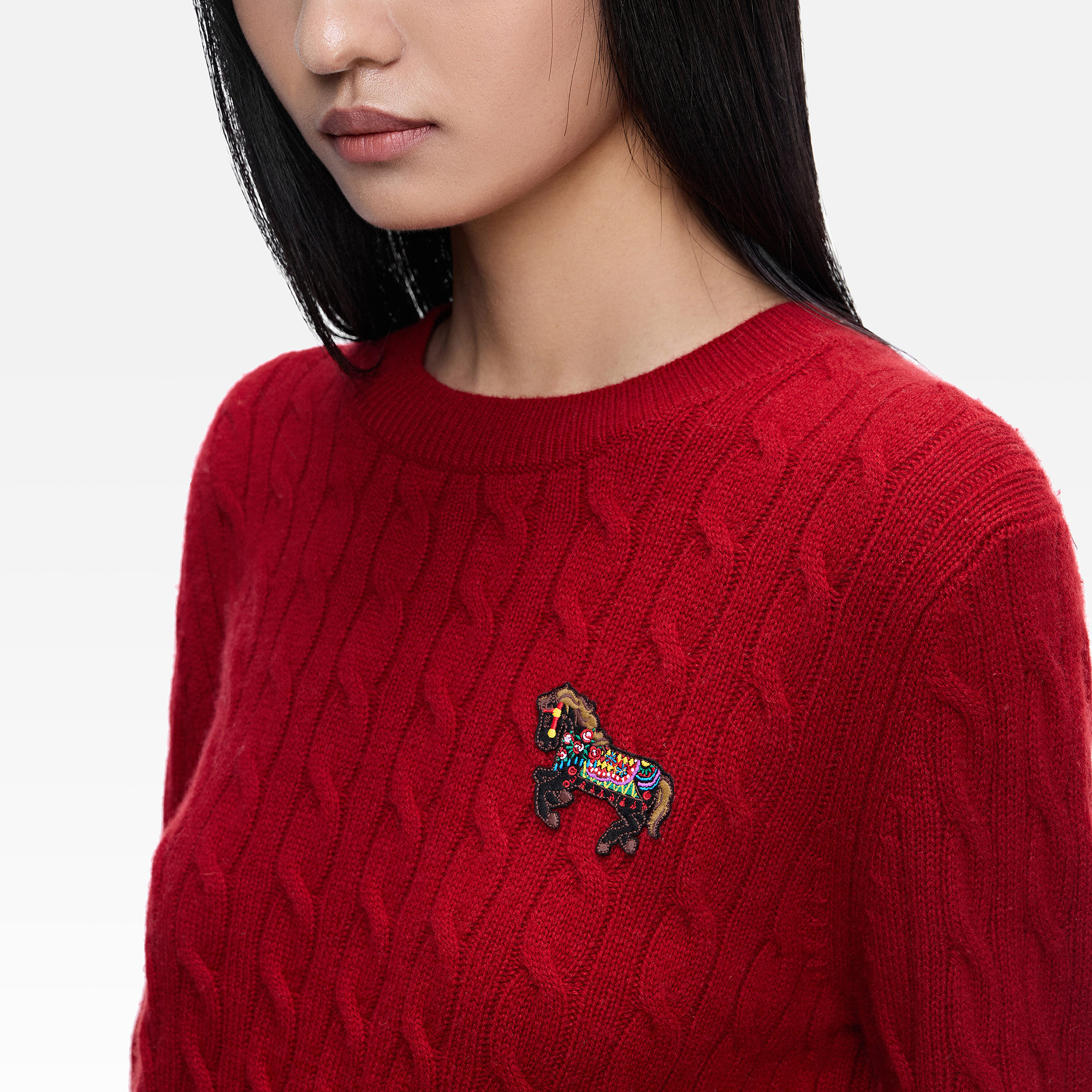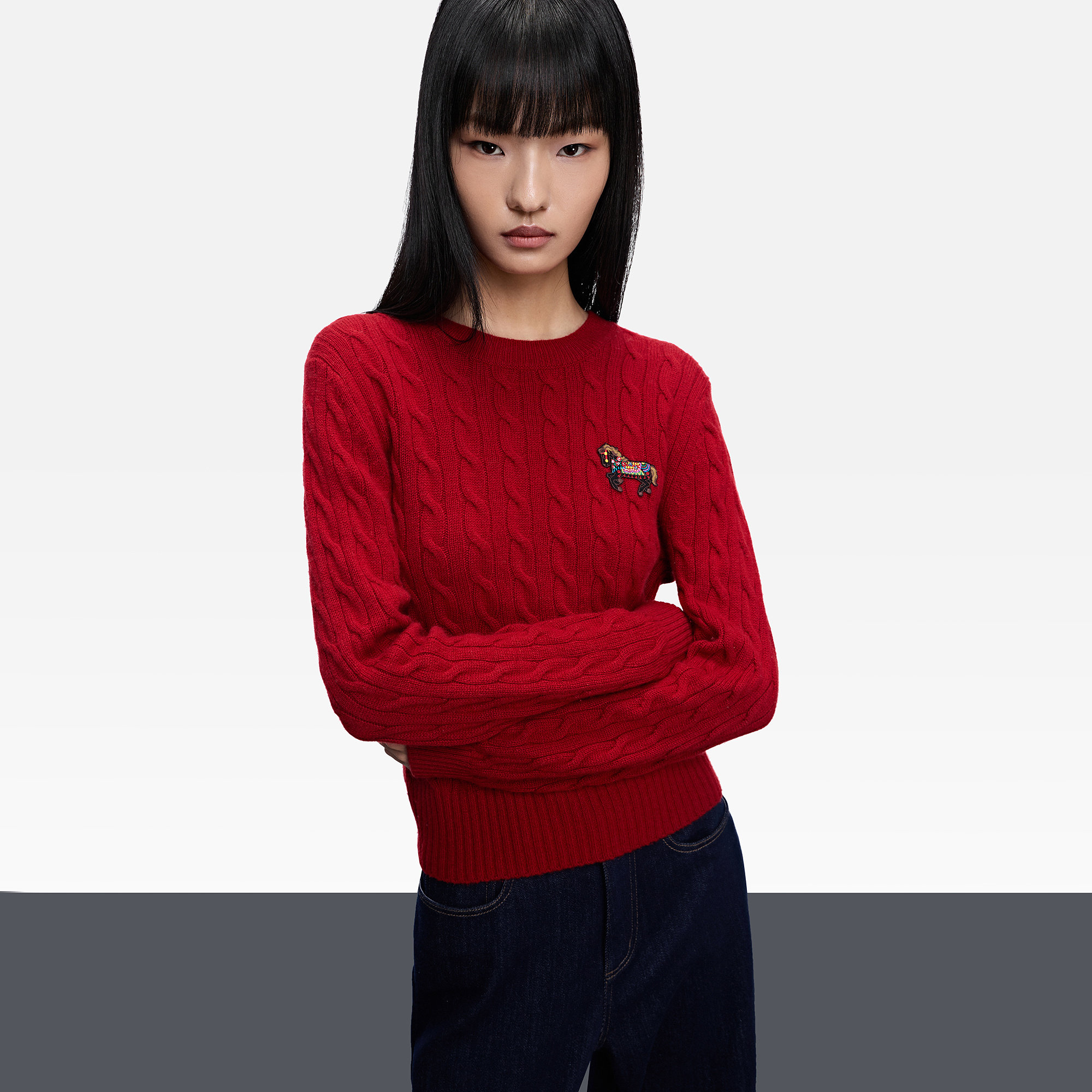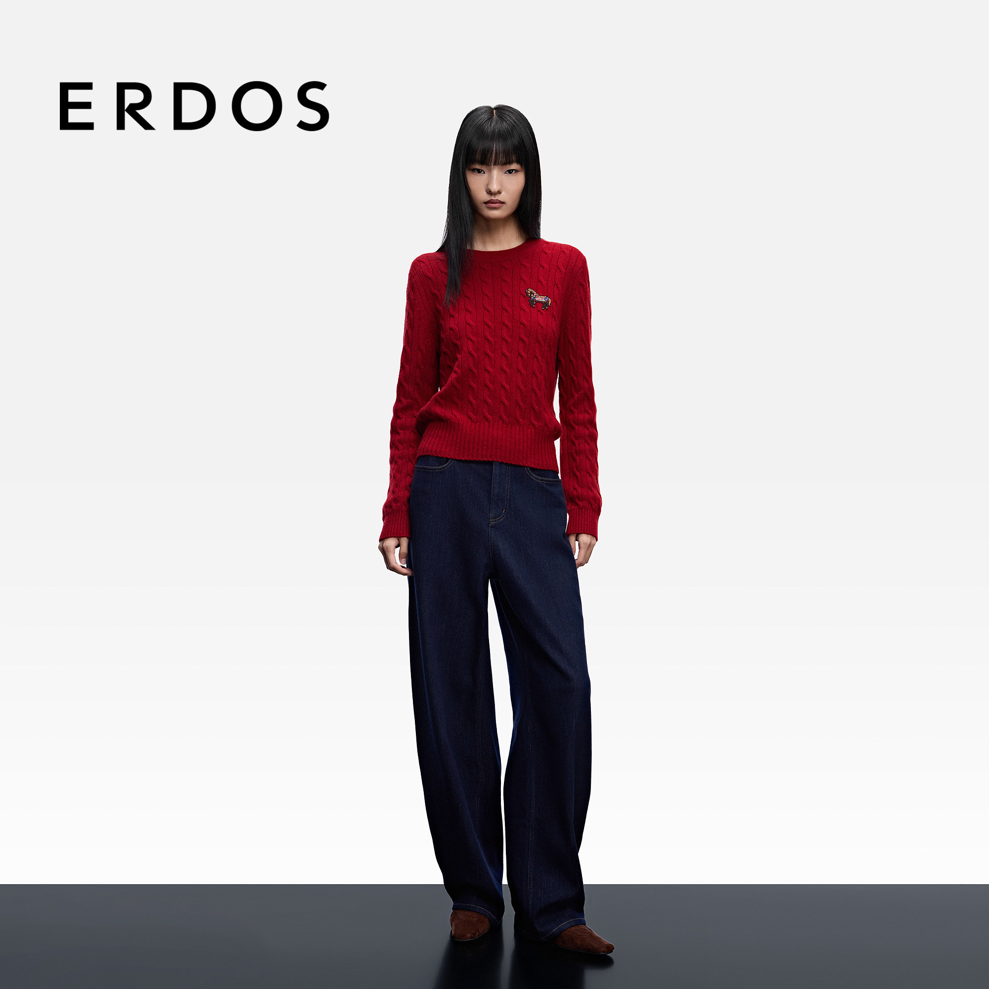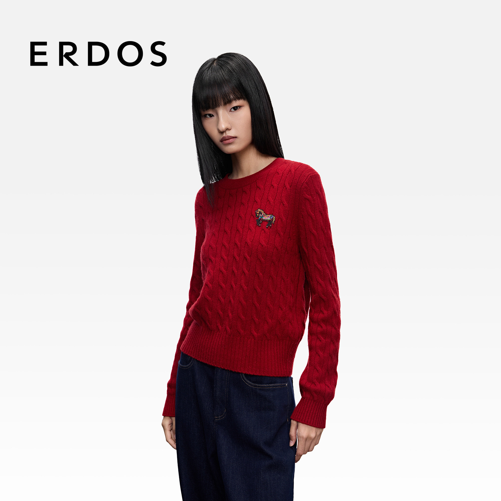ERDOS 绞花圆领羊绒套衫25冬新品学院风红色女针织衫新岁礼物系列