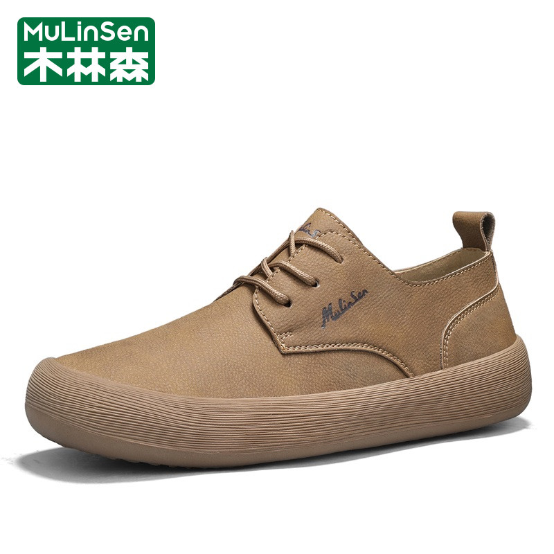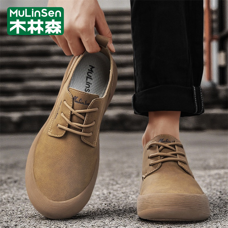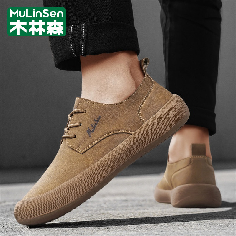 木林森男鞋春季复古英伦风皮鞋休闲工作宽楦大头爸爸通勤豆豆板鞋