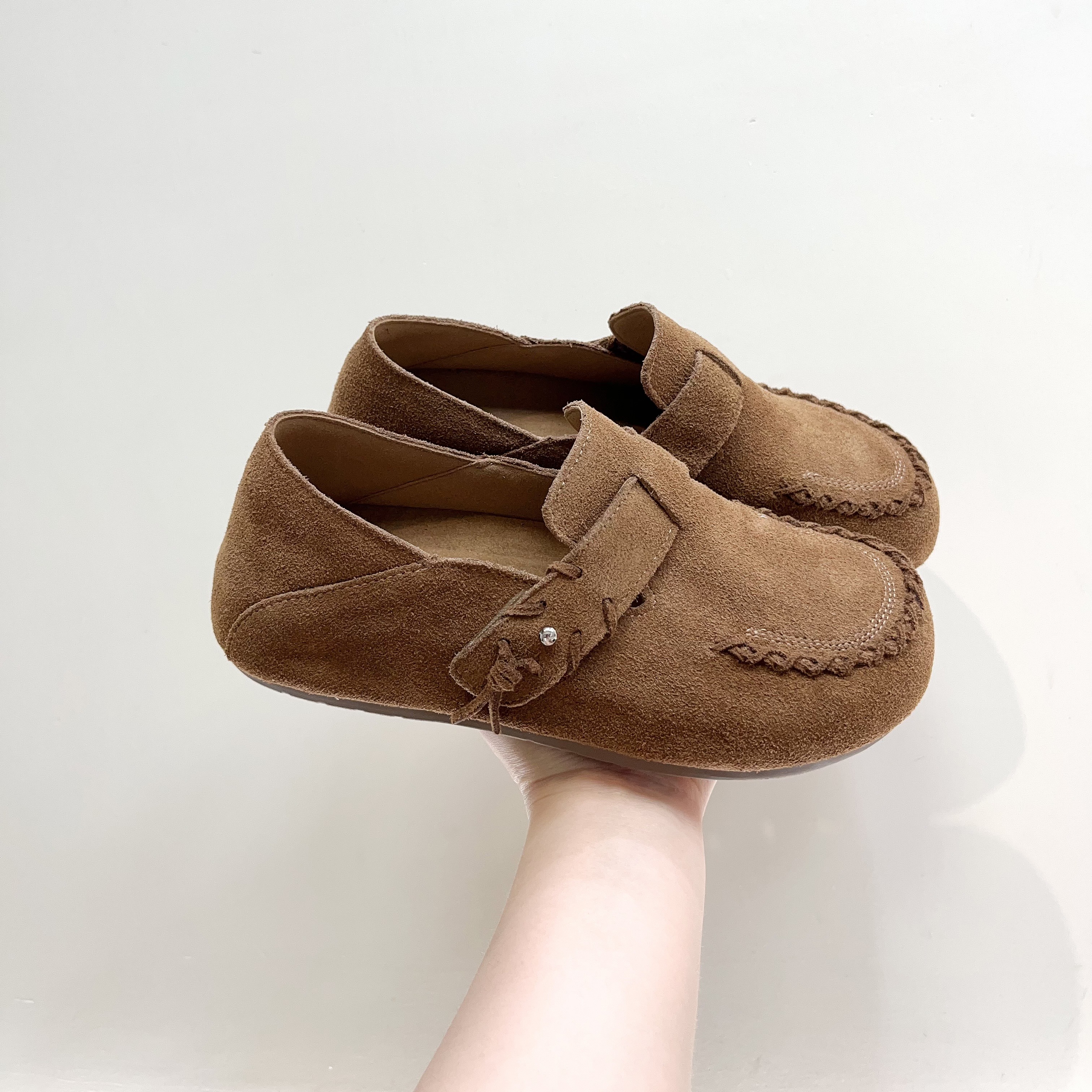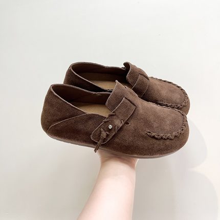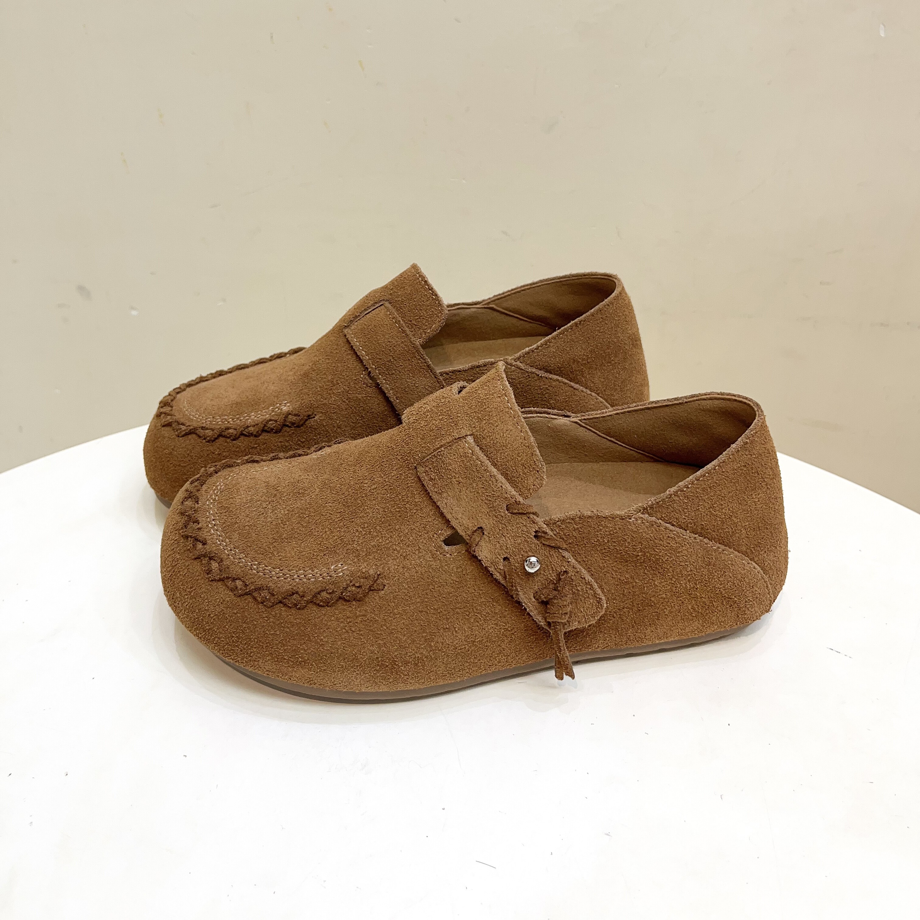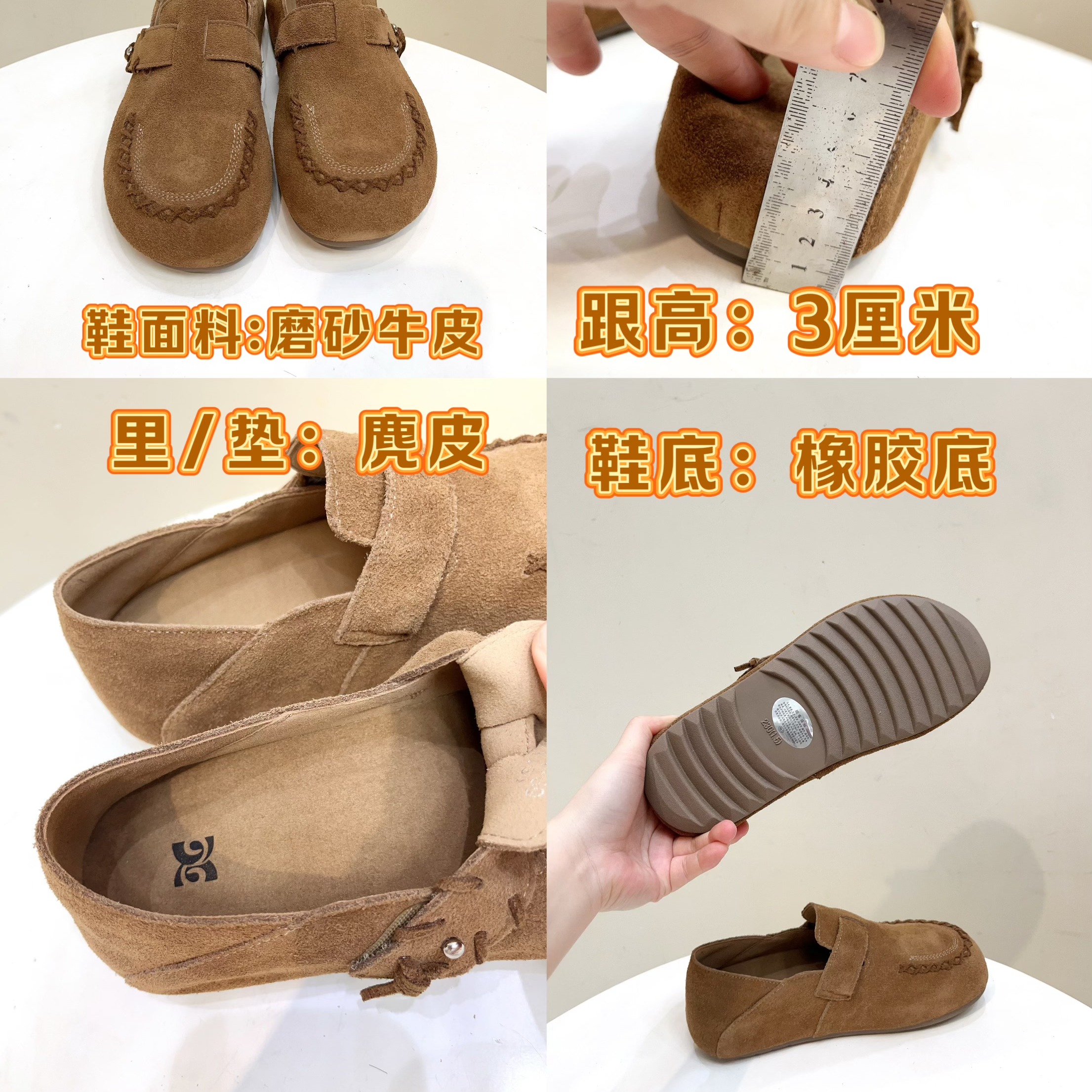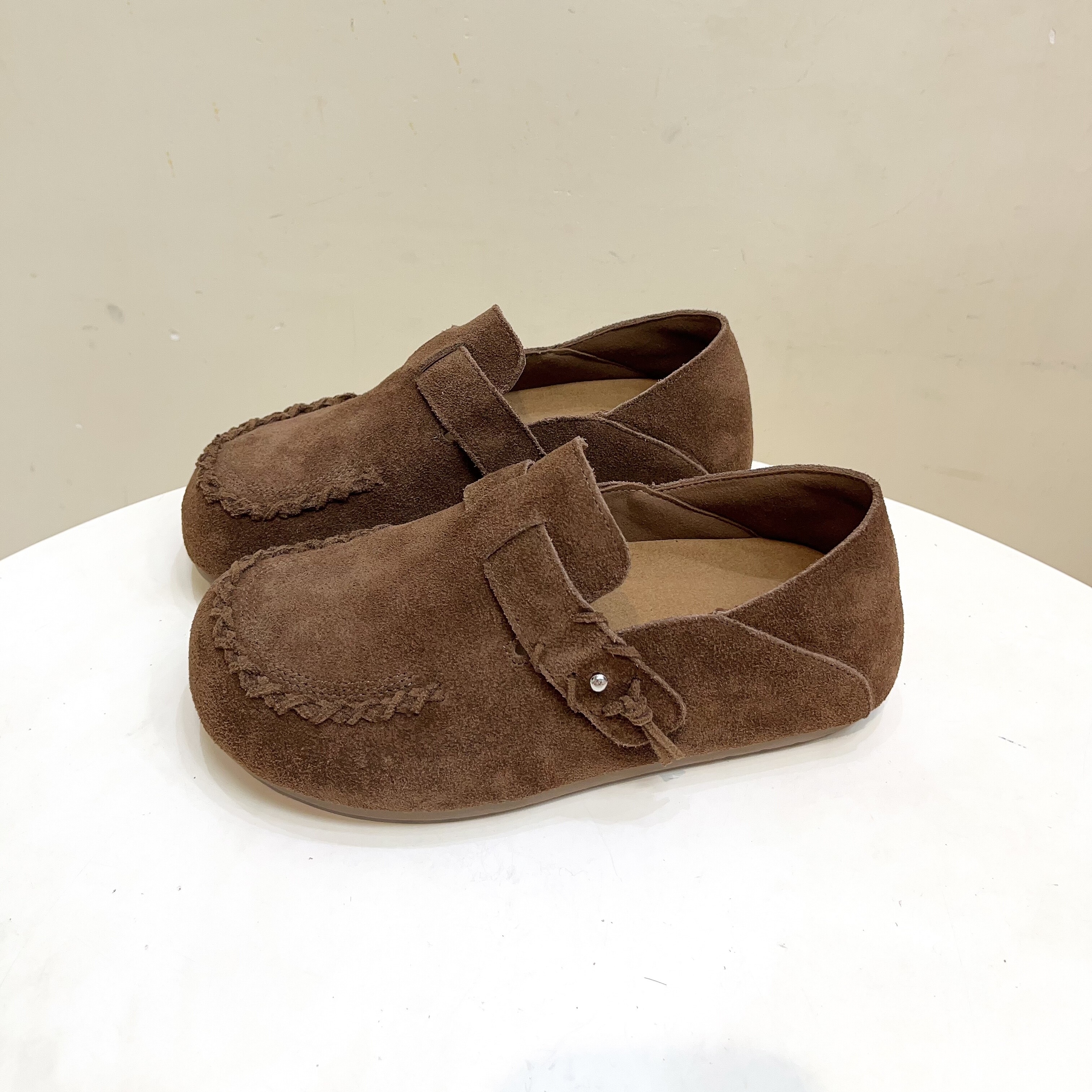 复古森系牛反绒平底乐福鞋女秋季外穿单鞋一脚蹬懒人豆豆鞋勃肯鞋