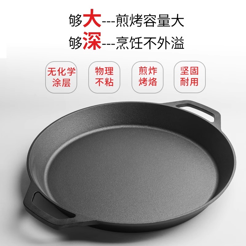 小幸福商用铁板烧烤盘家用铸铁韩式户外烤肉不沾铁板烧盘披萨盘