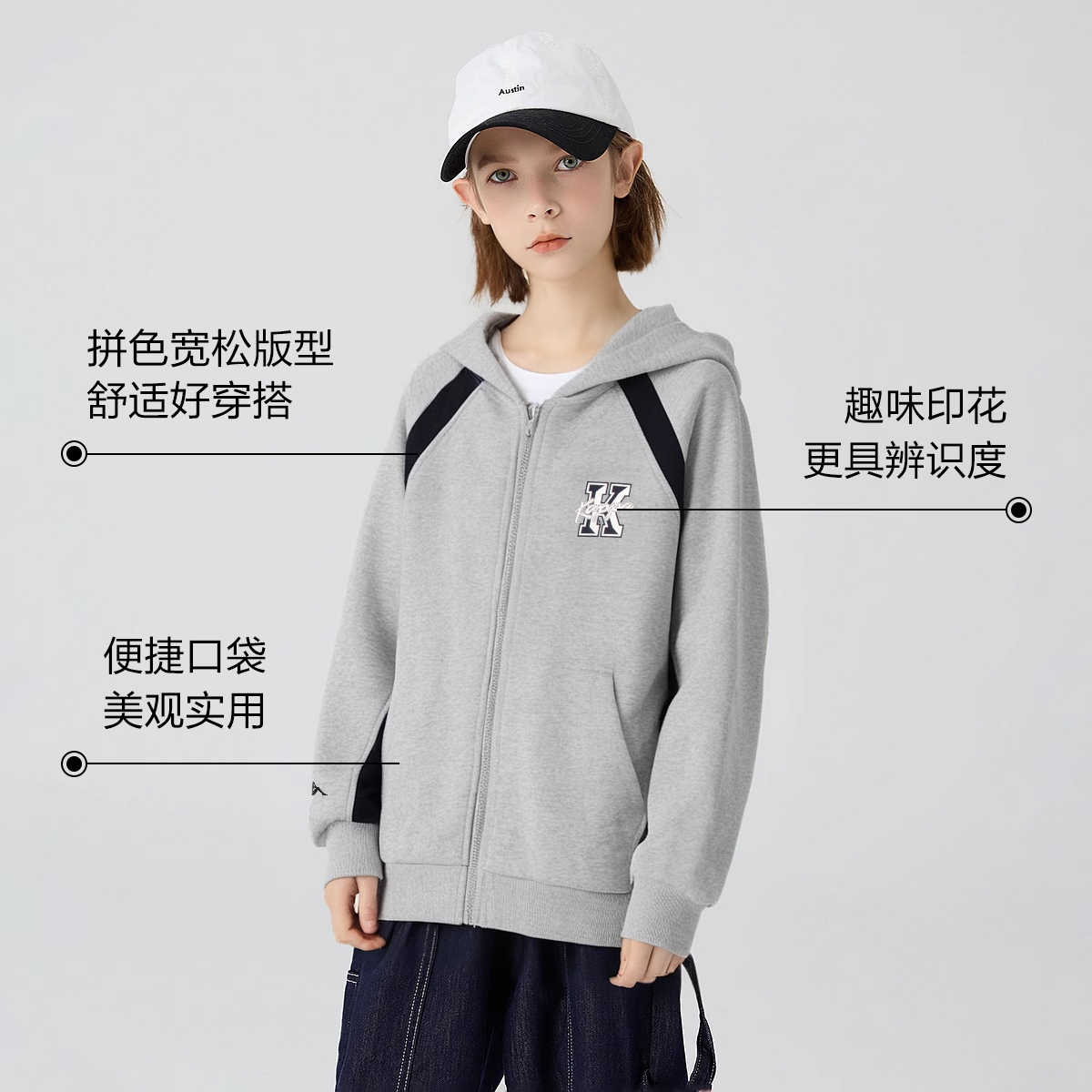 【专柜同款】kappa男童外套2025春秋新款中大童儿童连帽卫衣