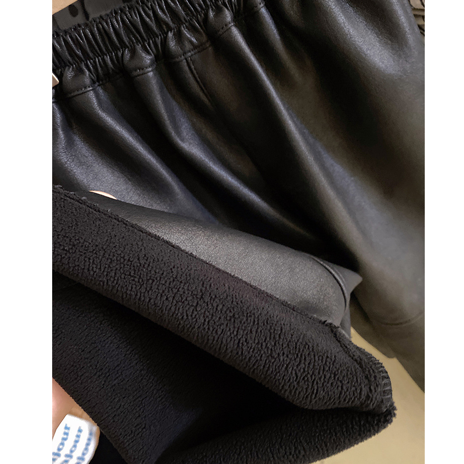 韩国女童加绒皮裤中小童冬季厚直筒裤子宝宝百搭时尚宽松加厚长裤