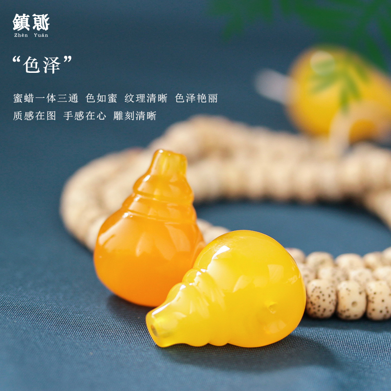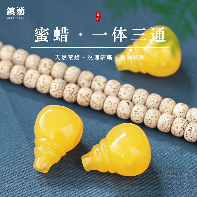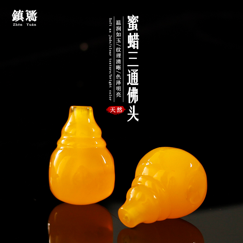 仿琥珀鸡油黄蜜蜡佛头一体三通手串散珠桶珠配件金刚星月菩提配饰