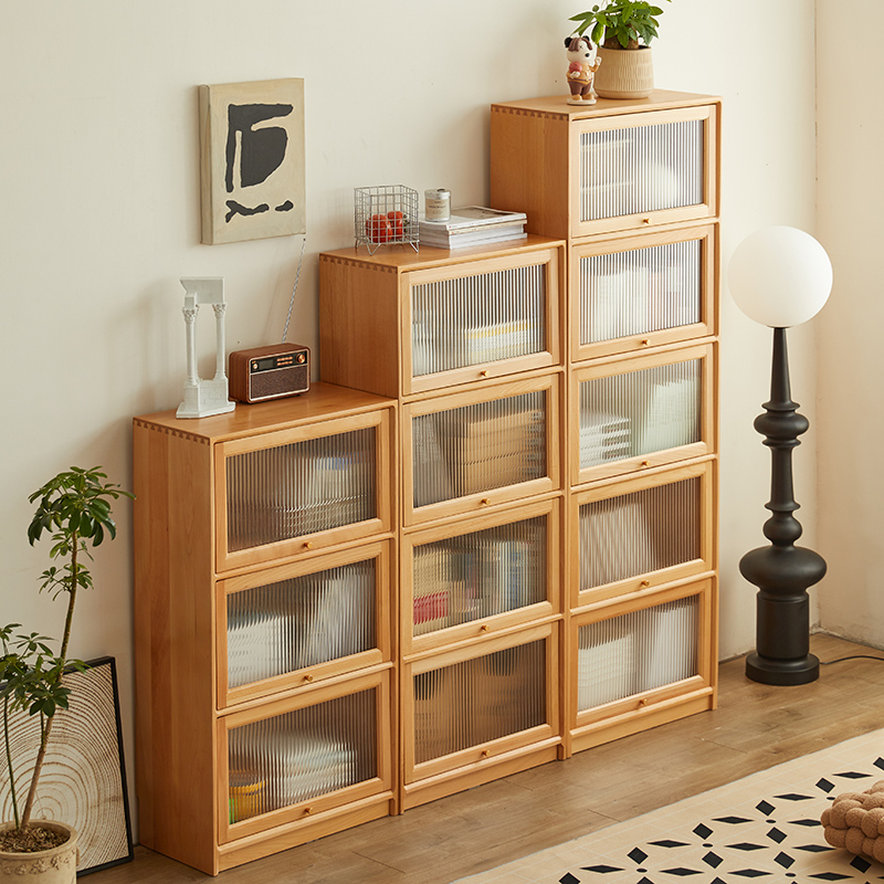 实木书柜带玻璃门防尘书柜组合家用窄柜简约置物架榉木书橱格子柜