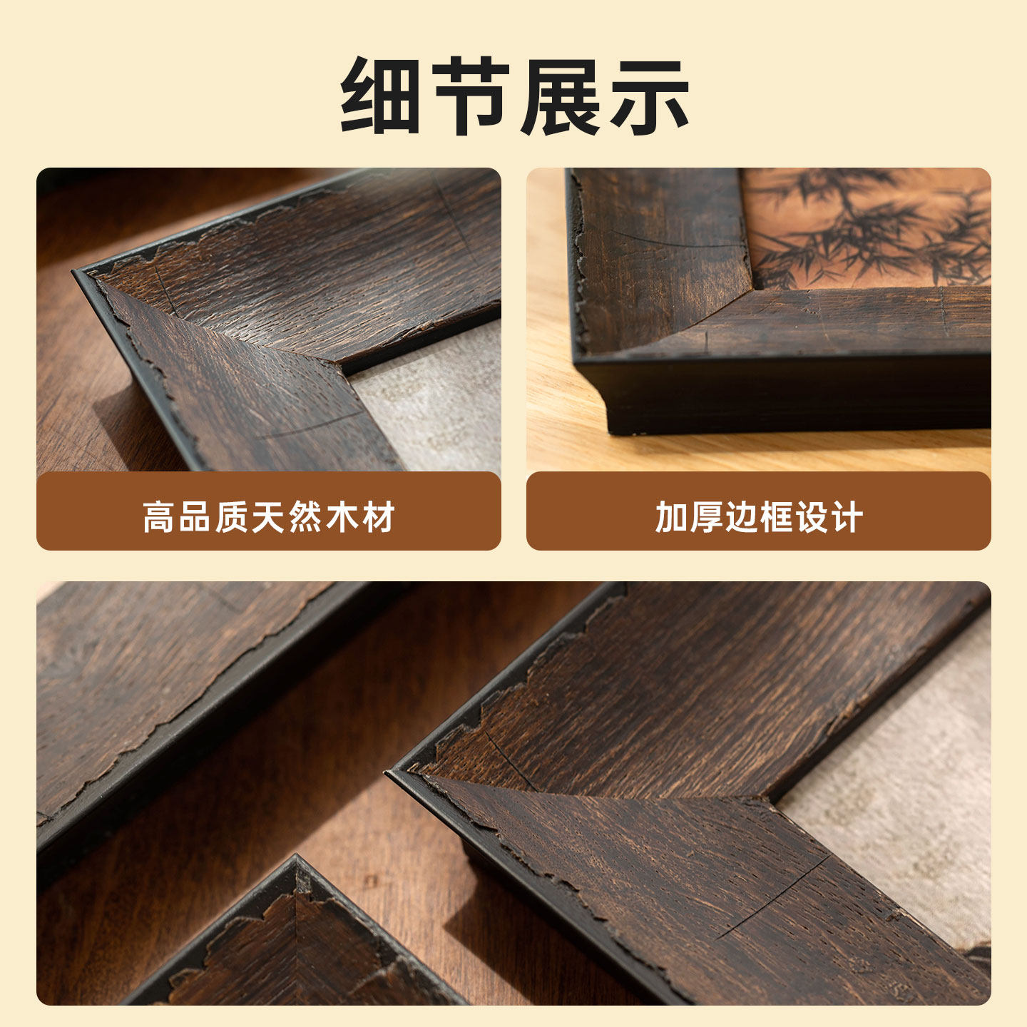 中古实木复古画框国画拼图装裱挂墙油画外框A4A3空相框展示框定制