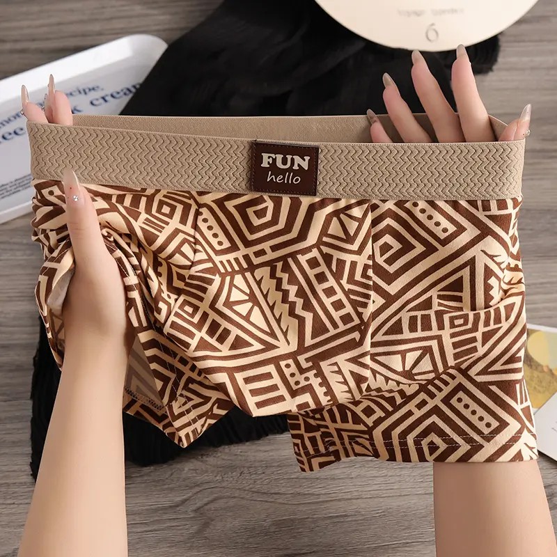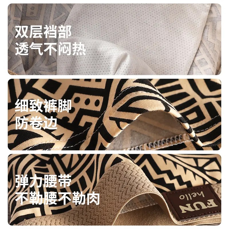棉质个性男士内裤男几何印花潮款平角内裤男生运动裤衩青年四角裤