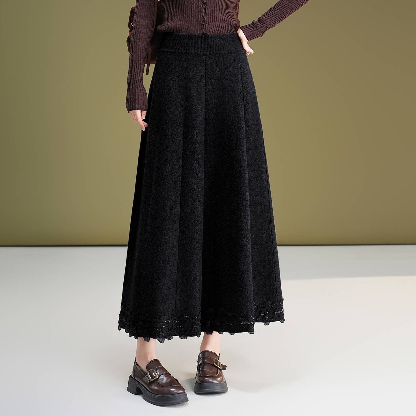品牌官方针织拼接半身裙女2025秋冬季新款学院风花边高腰显瘦a字