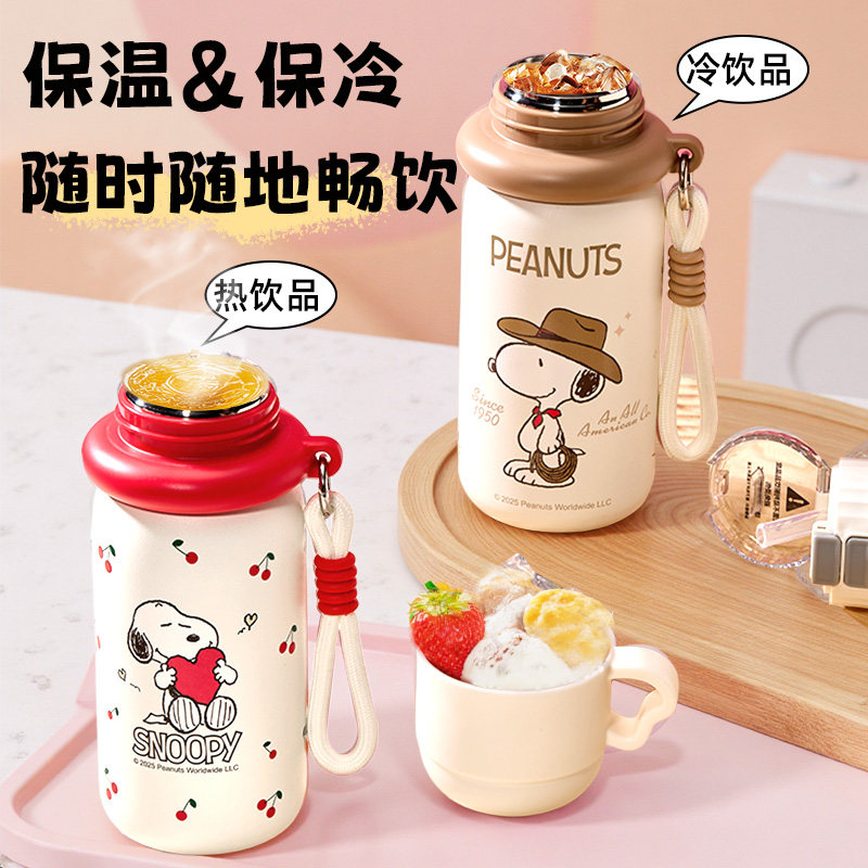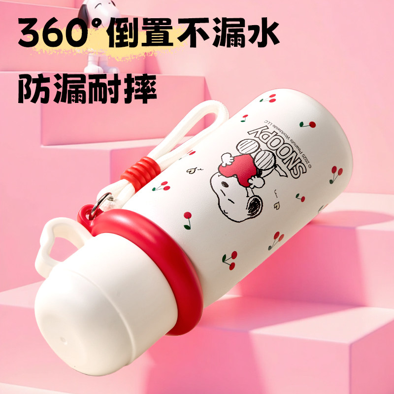 史努比儿童保温杯2025新款316L食品级水壶男女孩上学专用带盖杯子
