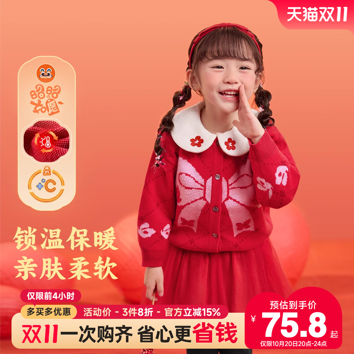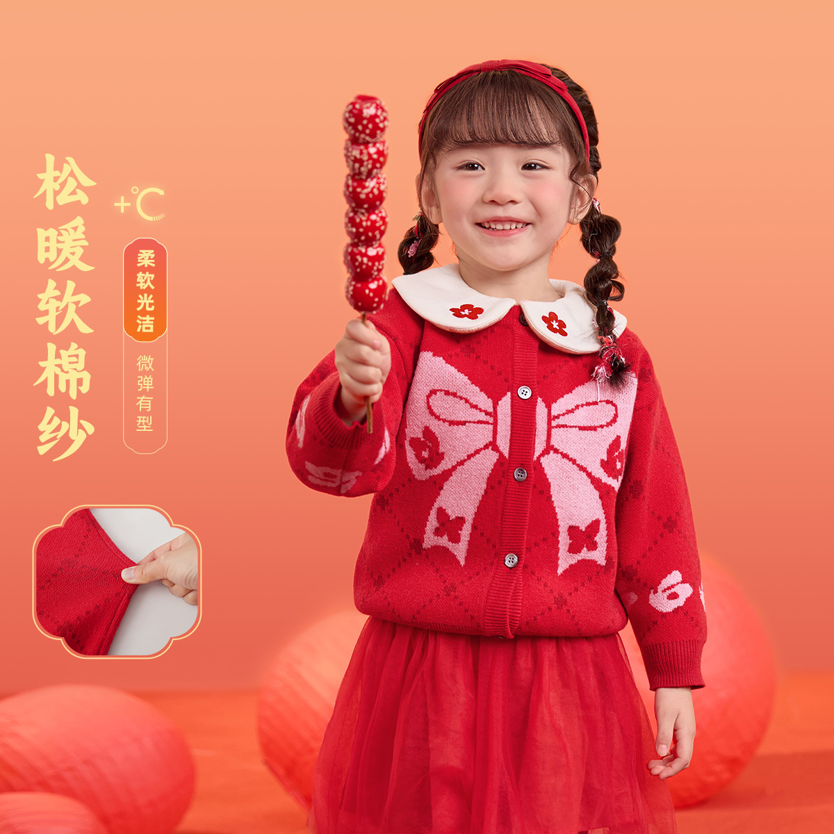 女童外套针织新年款冬季宝宝毛衣婴儿红色拜年服童装儿童过年衣服