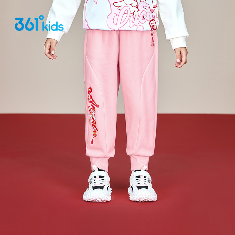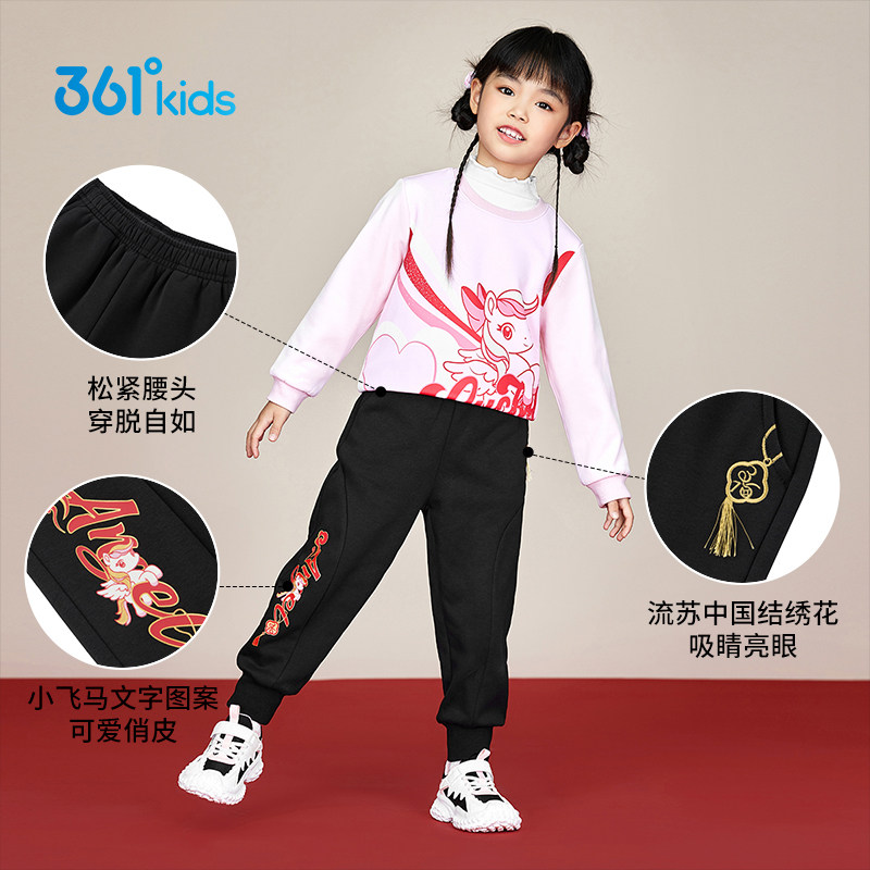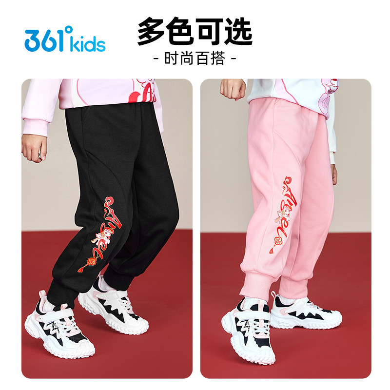 361°童装女针织加厚长裤运动暖热绒2025冬年装新年小童马年裤子