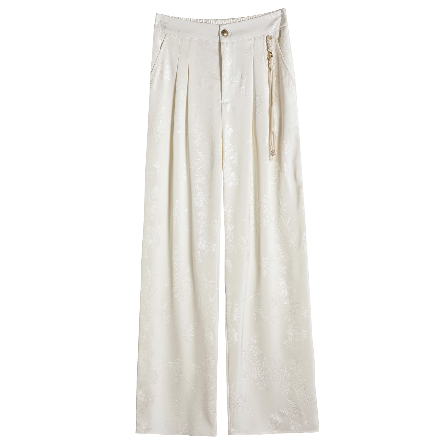 2025夏季新款薄款新中式提花缎面国风西装裤冰丝阔腿裤女直筒裤潮