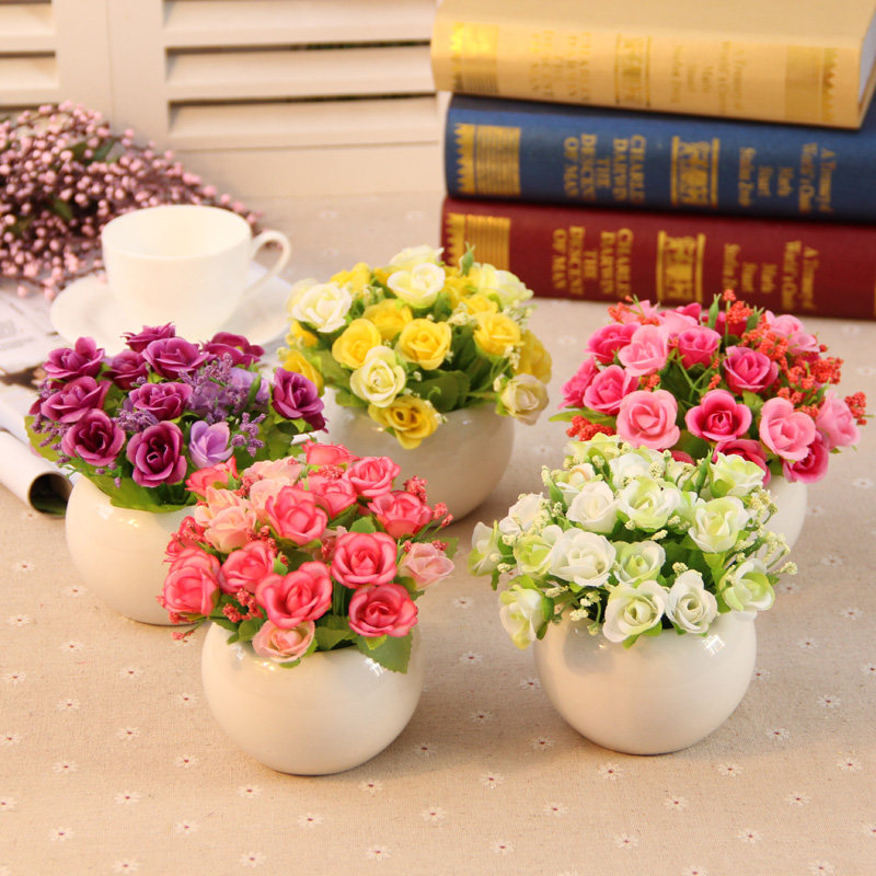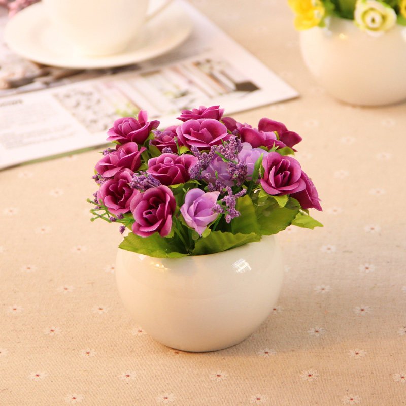 迷你圆球陶瓷花瓶绿叶仿真花花艺套装 客厅隔板新房家居装饰品