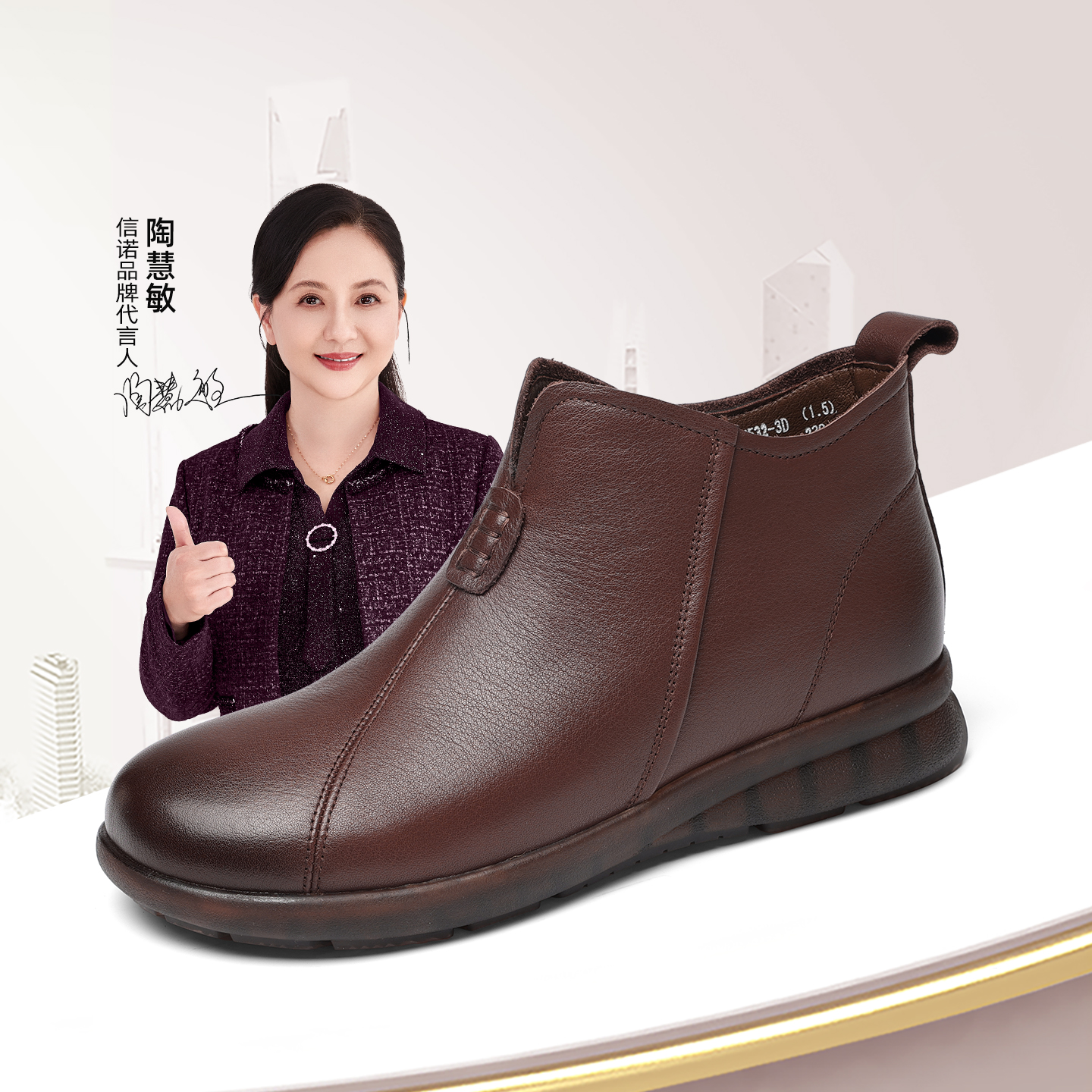 中老年妈妈棉鞋平底女鞋软底舒适真皮短靴子加绒皮鞋2025冬季新款