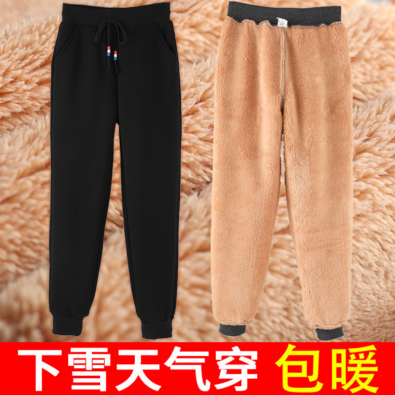 加绒运动裤女大码羊羔绒秋冬外穿保暖宽松加厚卫裤哈伦休闲女裤子