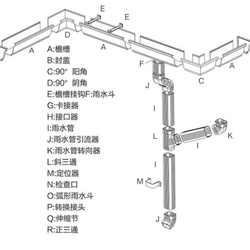 铝合金别墅天沟雨水槽成品檐沟方形雨水管阳光房沿沟落水槽排水管