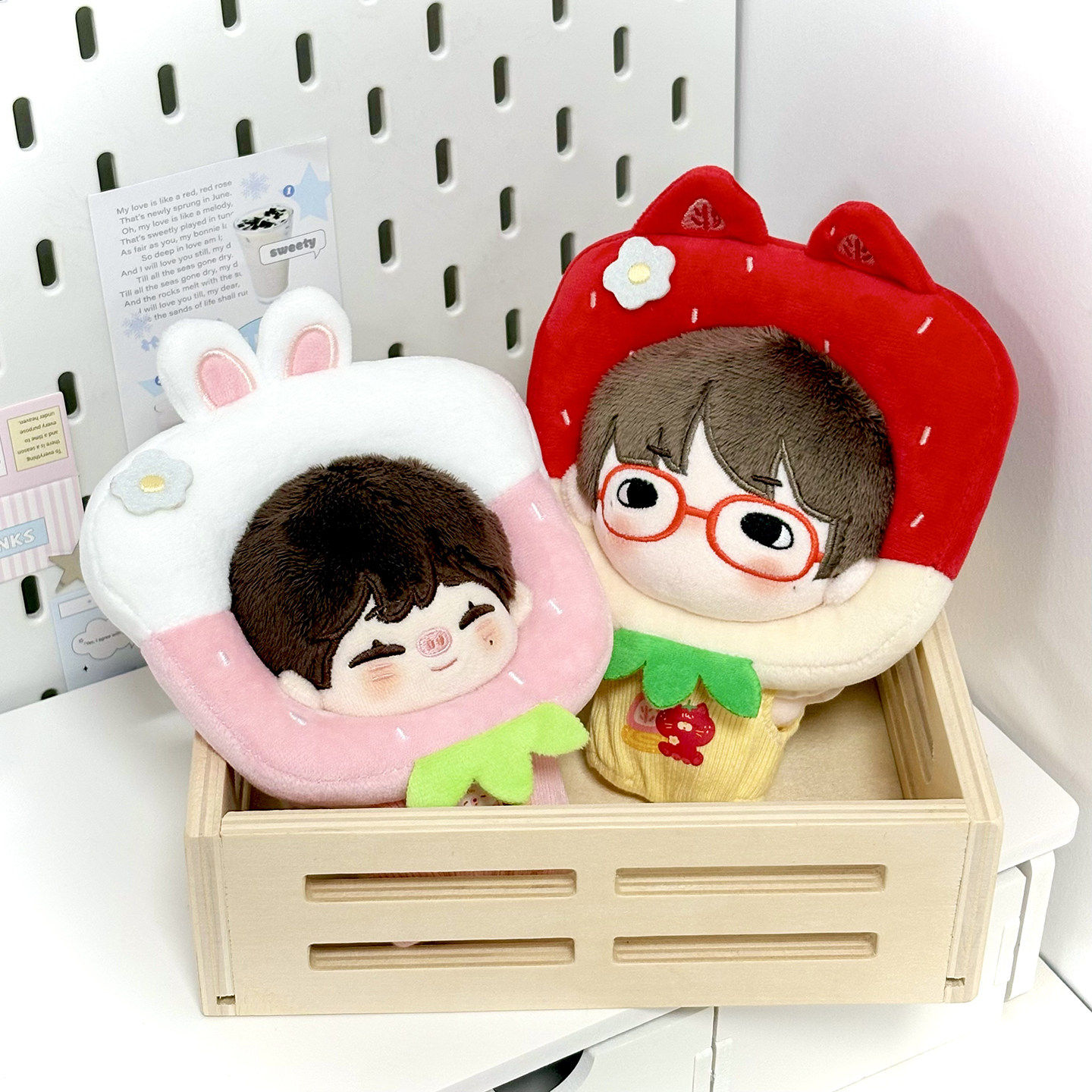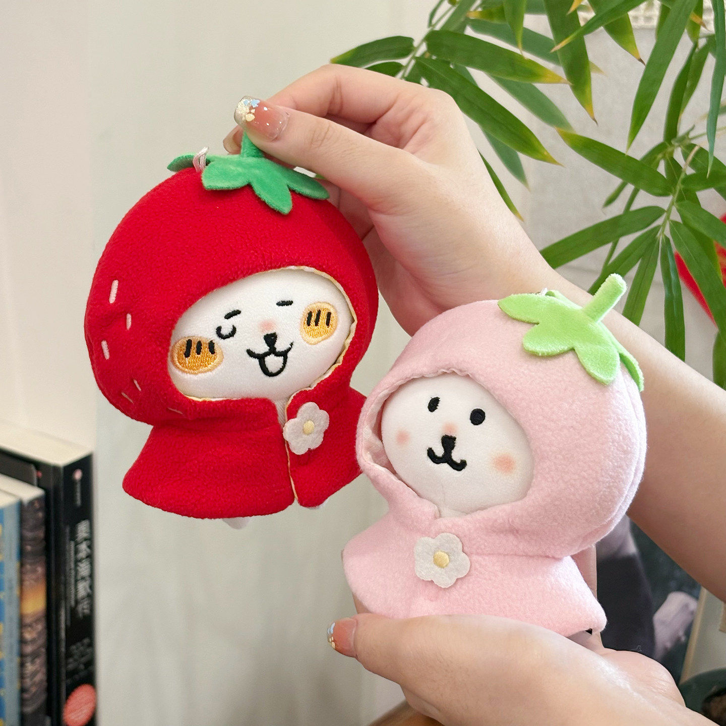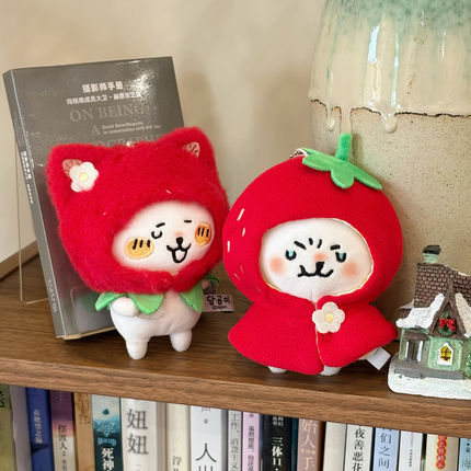 萌遇时光 草莓系列 10cm棉花娃娃衣自嘲熊平淡兔毛绒挂件斗篷头套