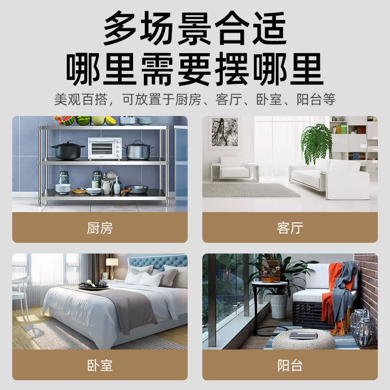 不锈钢三层厨房置物架落地多x层储物货架微波炉烤箱多功能收纳架