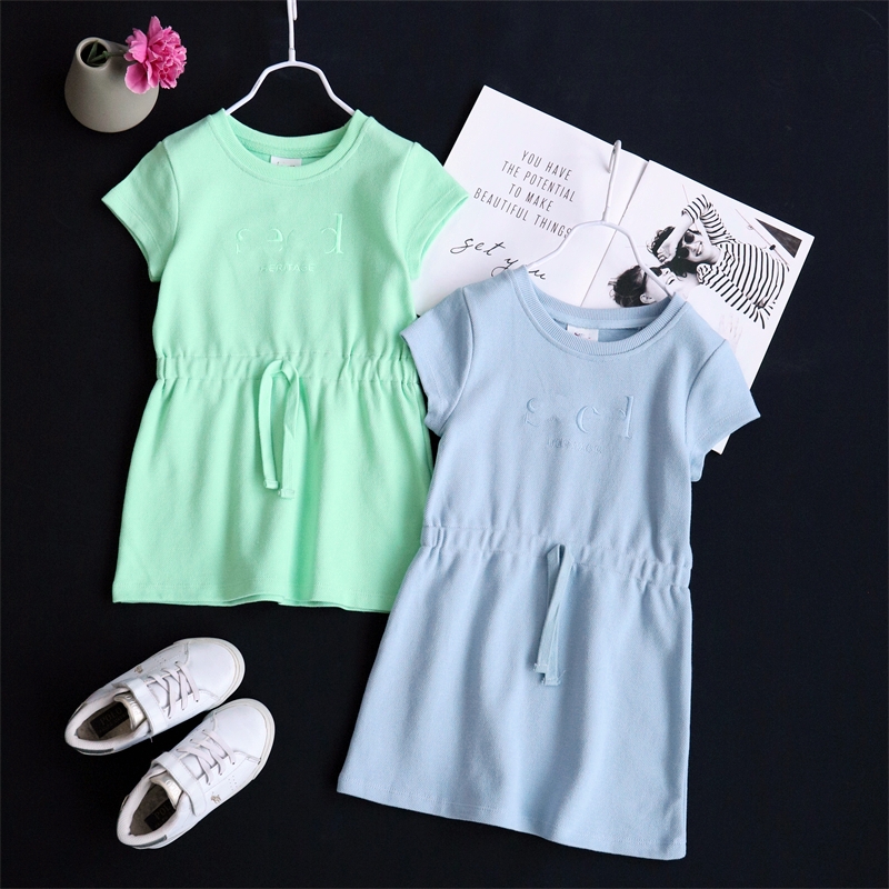 外贸原单澳洲小精品夏装女童纯色刺绣字母珠地棉圆领短袖连衣裙鑫