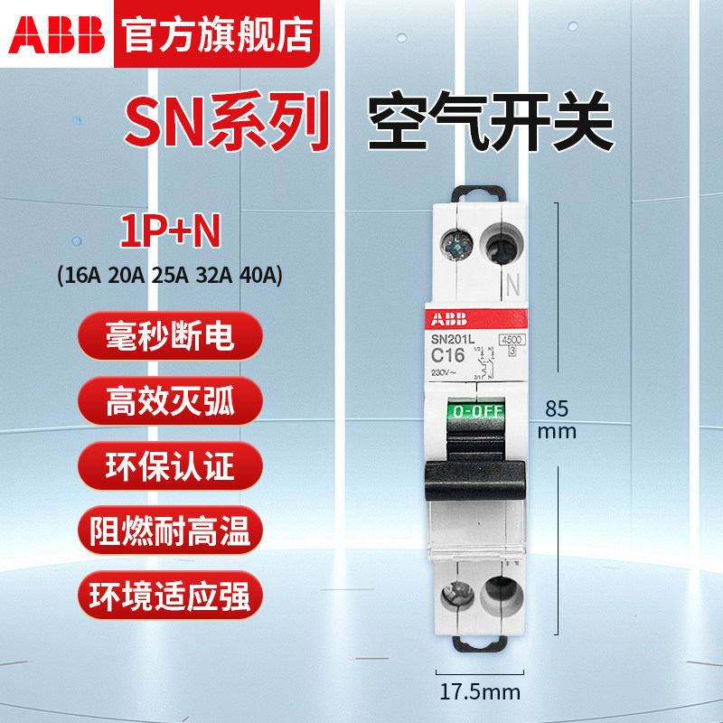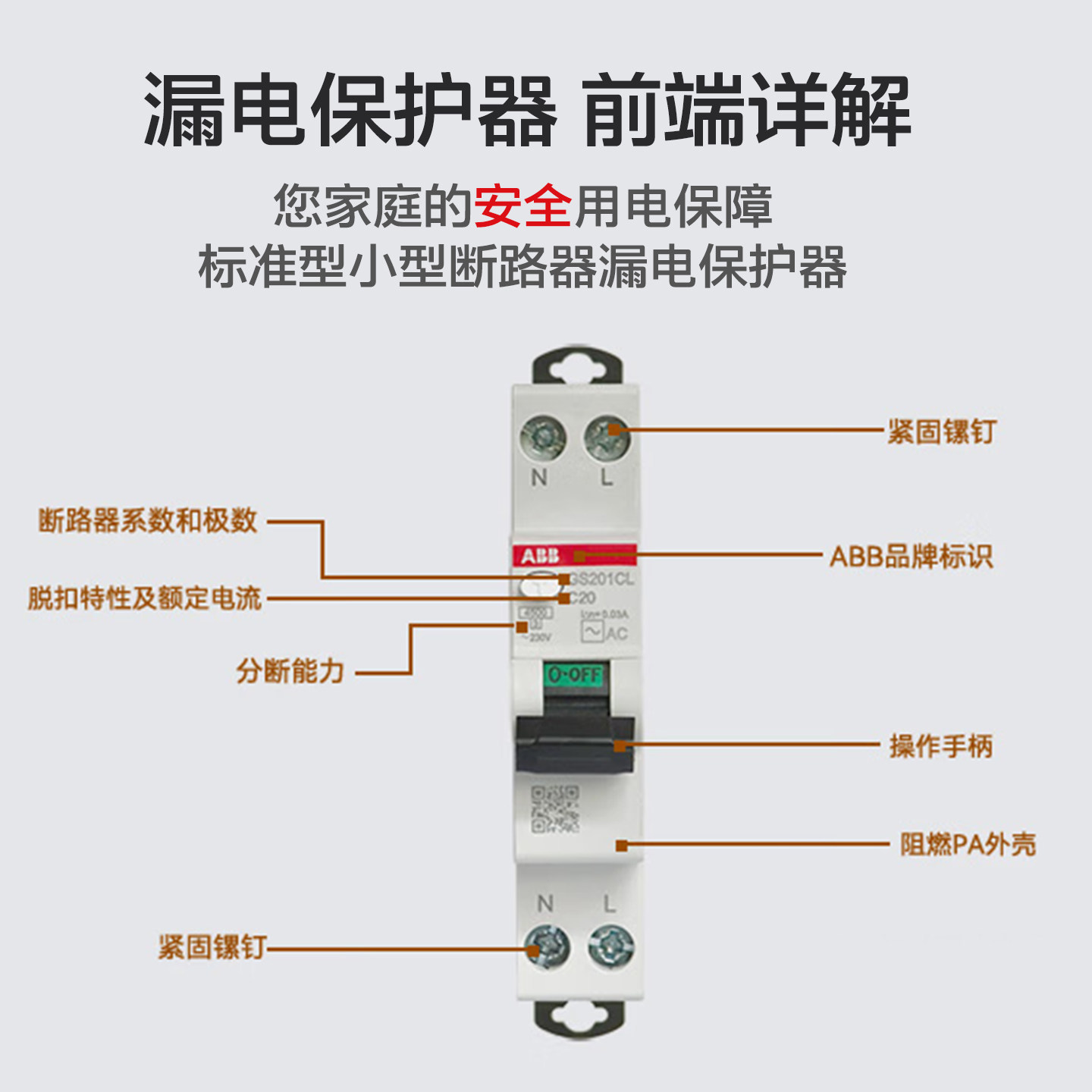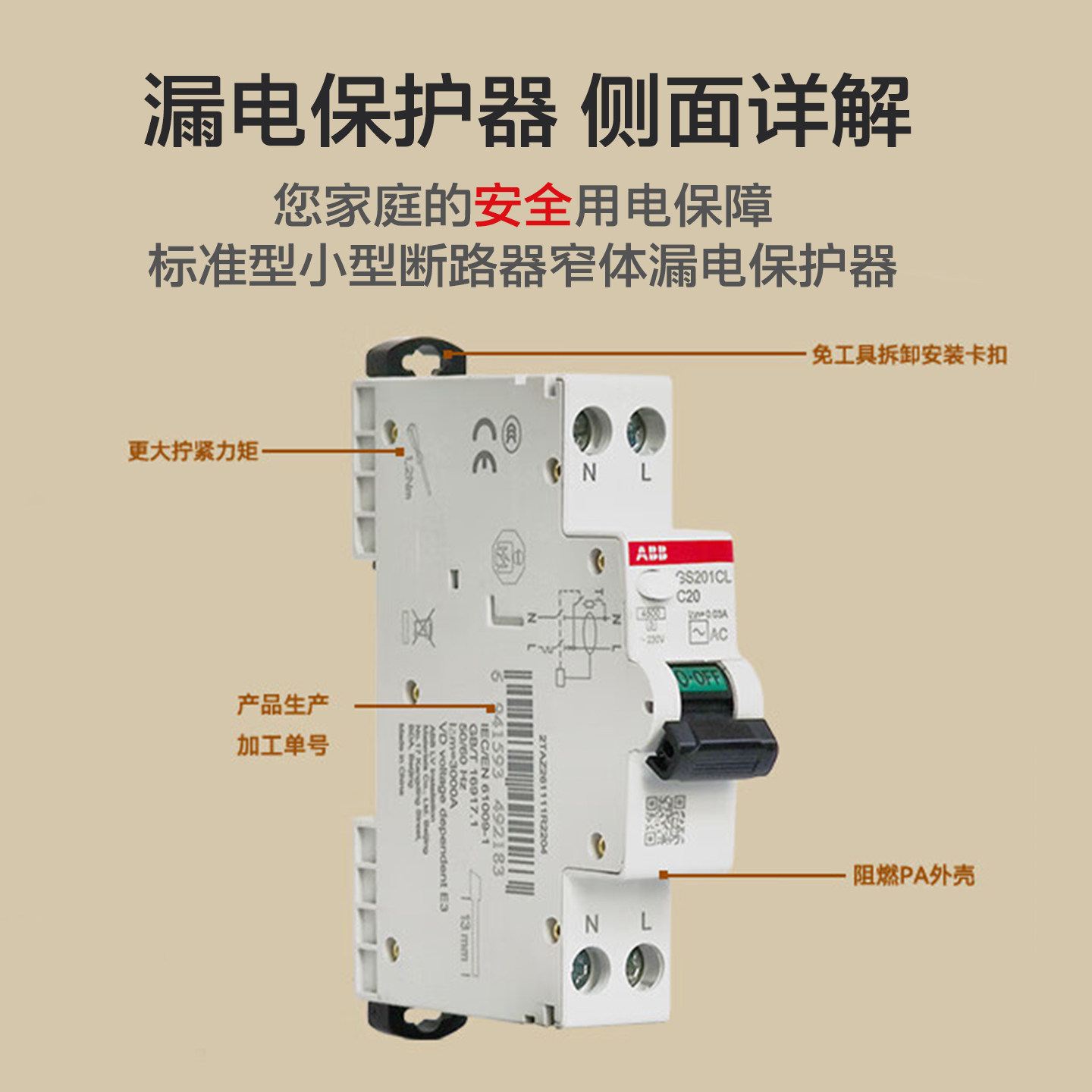 ABB空气开关漏电保护器1P+N家用断路器漏载保护器官方旗舰店