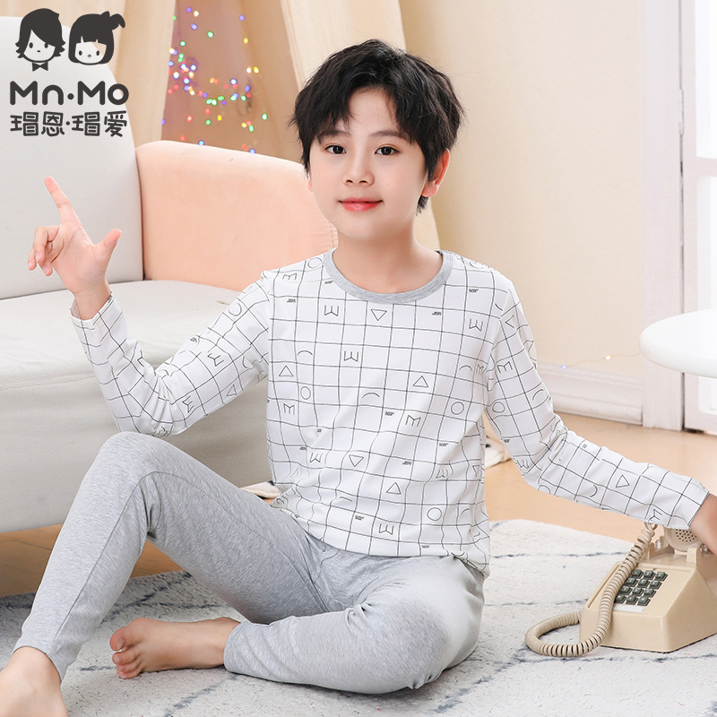 瑁恩瑁爱男大童秋衣秋裤套装纯棉男童打底内衣全棉春秋薄款青少年