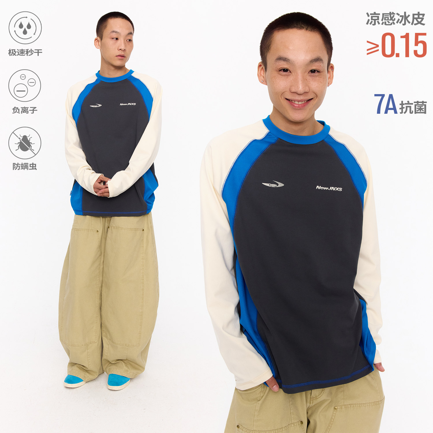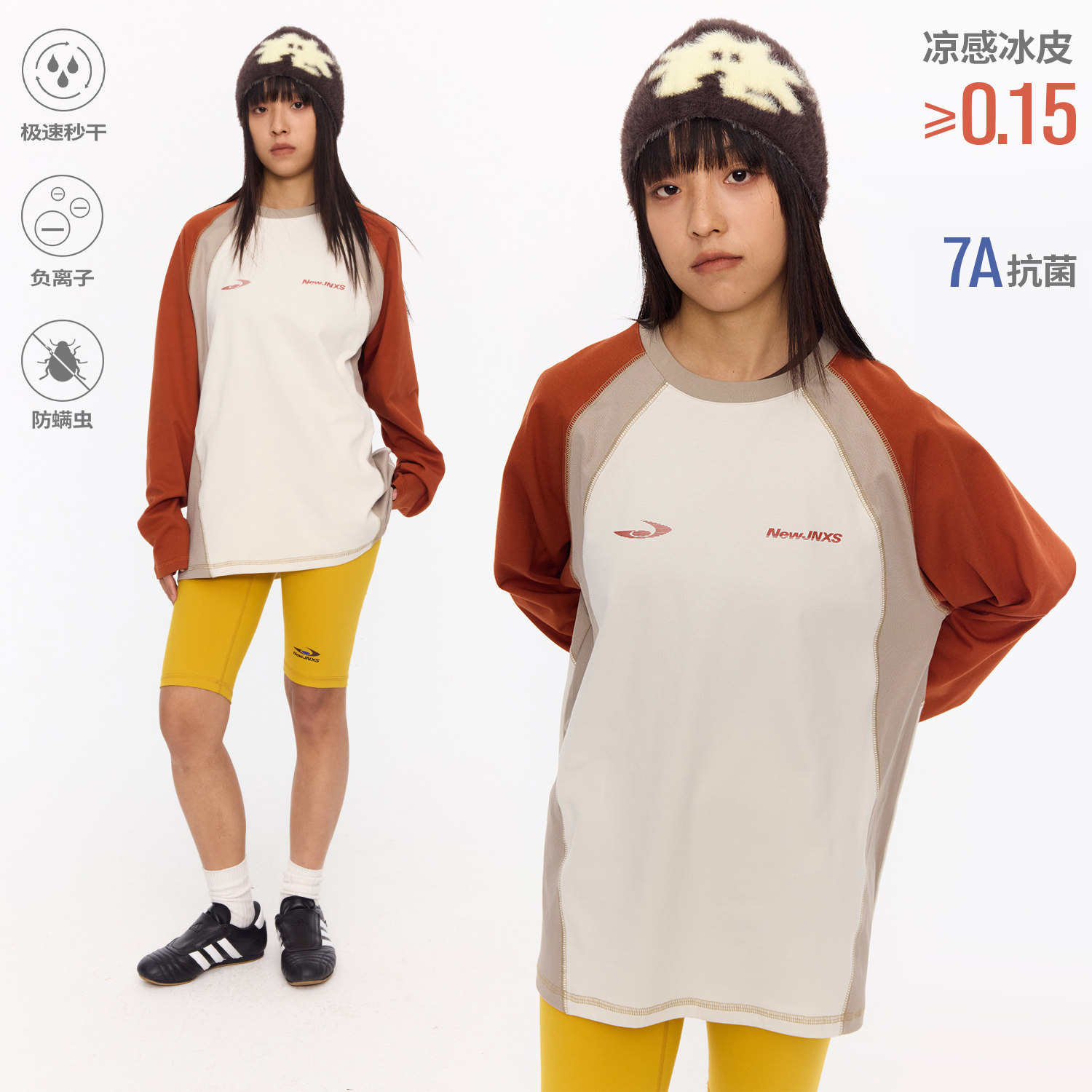 江南先生NewJNXS速干骑行长袖T恤春秋男女情侣宽松运动拼色打底t