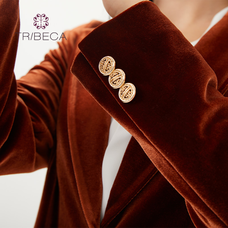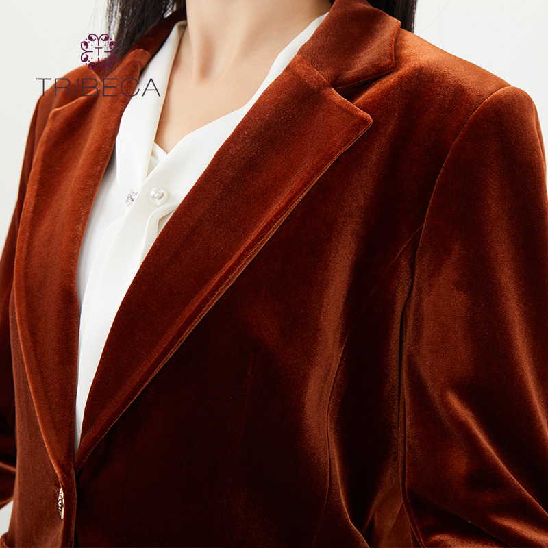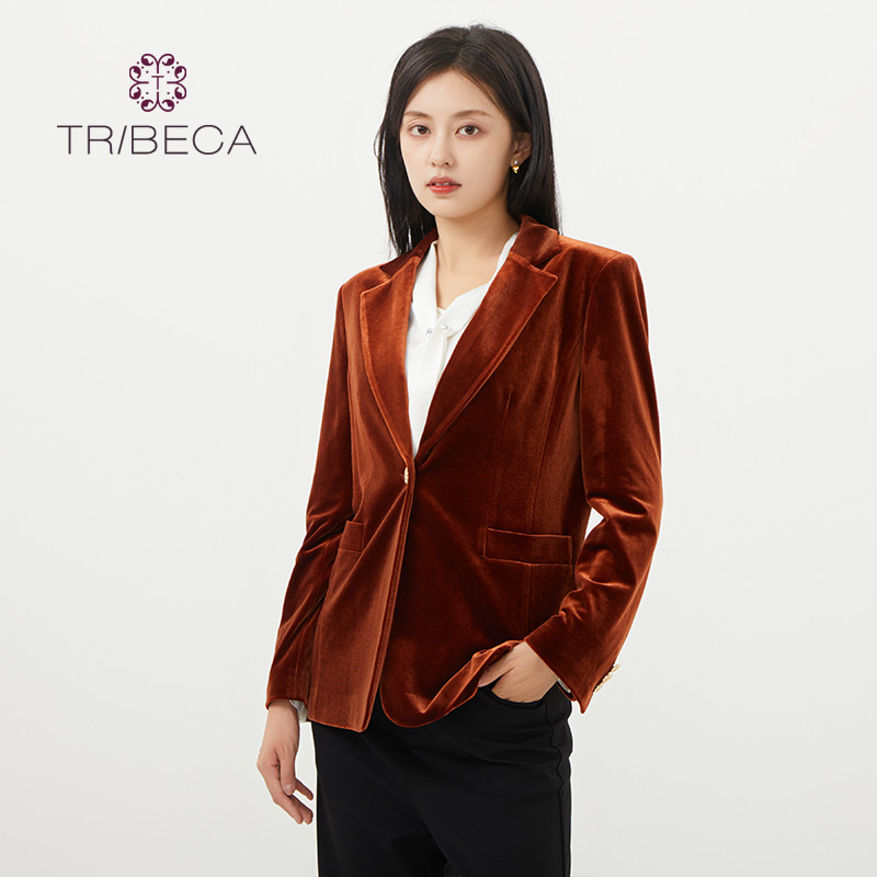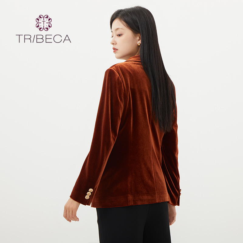 TRIBECA翠贝卡商场同款秋新款安格拉红复古小西服金丝绒外套