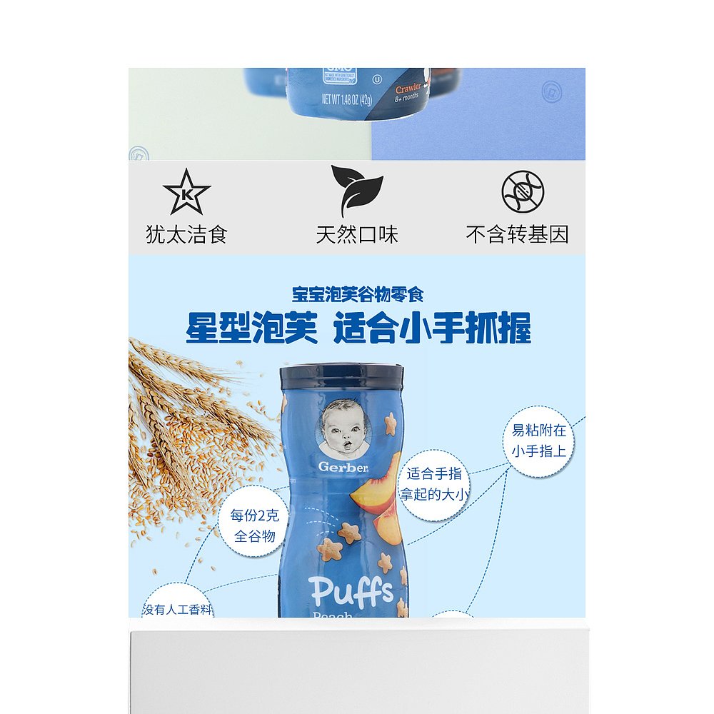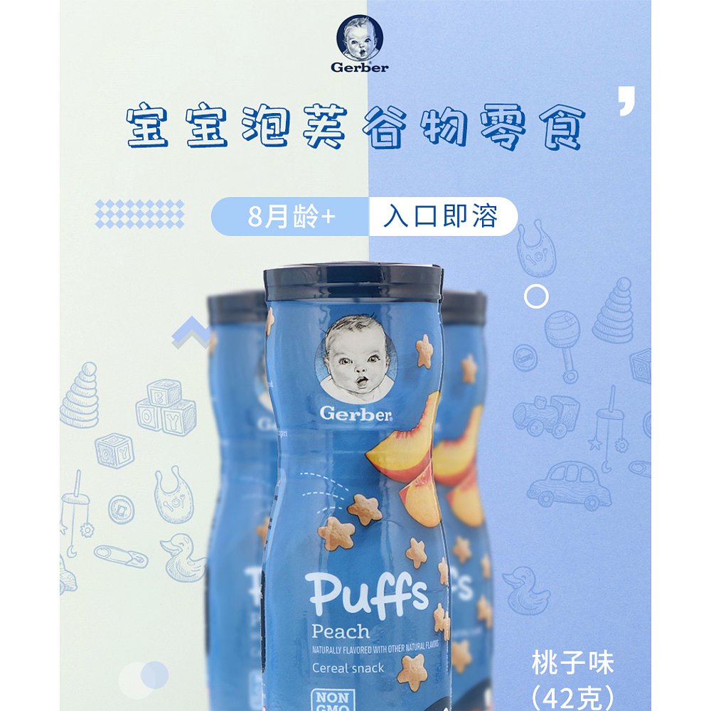 香港直发Gerber嘉宝桃子味膨化谷物零食无人工调味料锻炼咀嚼42g