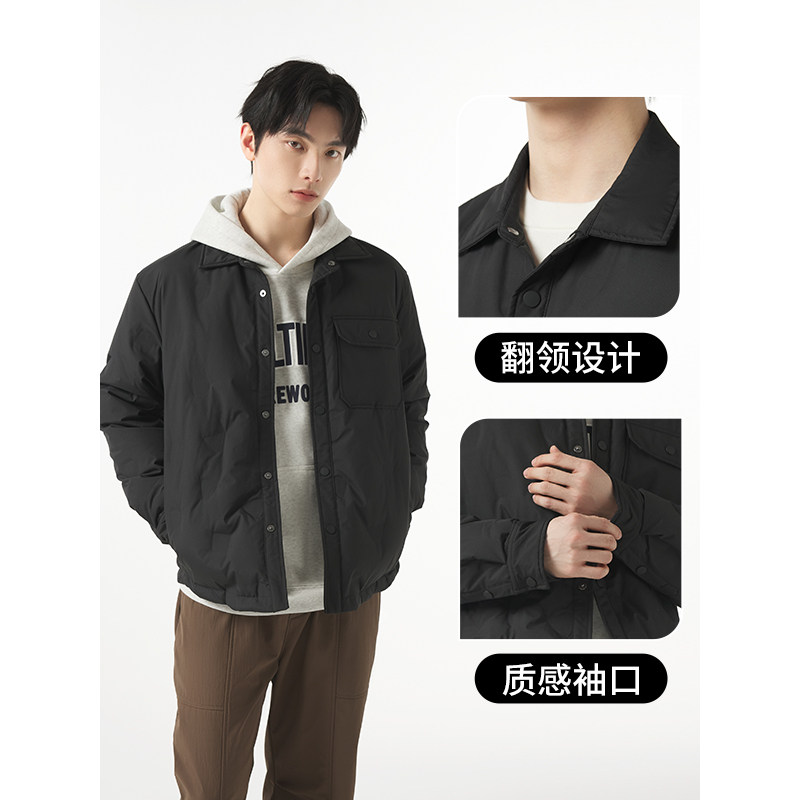 热风衬衫式羽绒服2025年冬款男士轻薄舒适保暖潮流百搭外套男